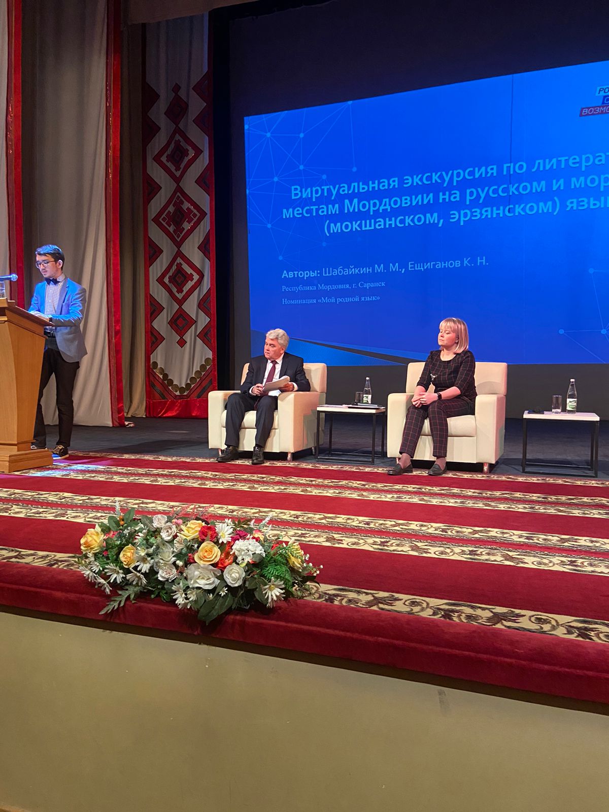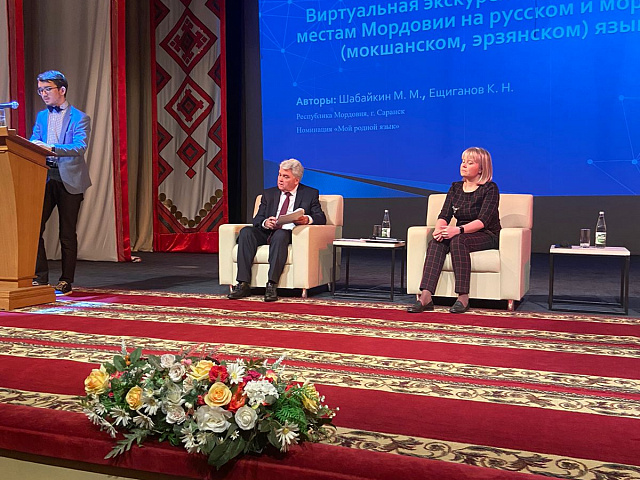 Студент филологического факультета Шабайкин Михаил в рамках работы тематической панельной дискуссии «Молодежные инициативы и лучшие практики» выступил с докладом «Студенческие образовательные проекты по сохранению и продвижению родного языка и культуры» и представил основные векторы развития проектной деятельности в области мордовских языков и литературы. Выступление Шабайкина Михаила, самого молодого докладчика, вызвало живой интерес у участников мероприятия.