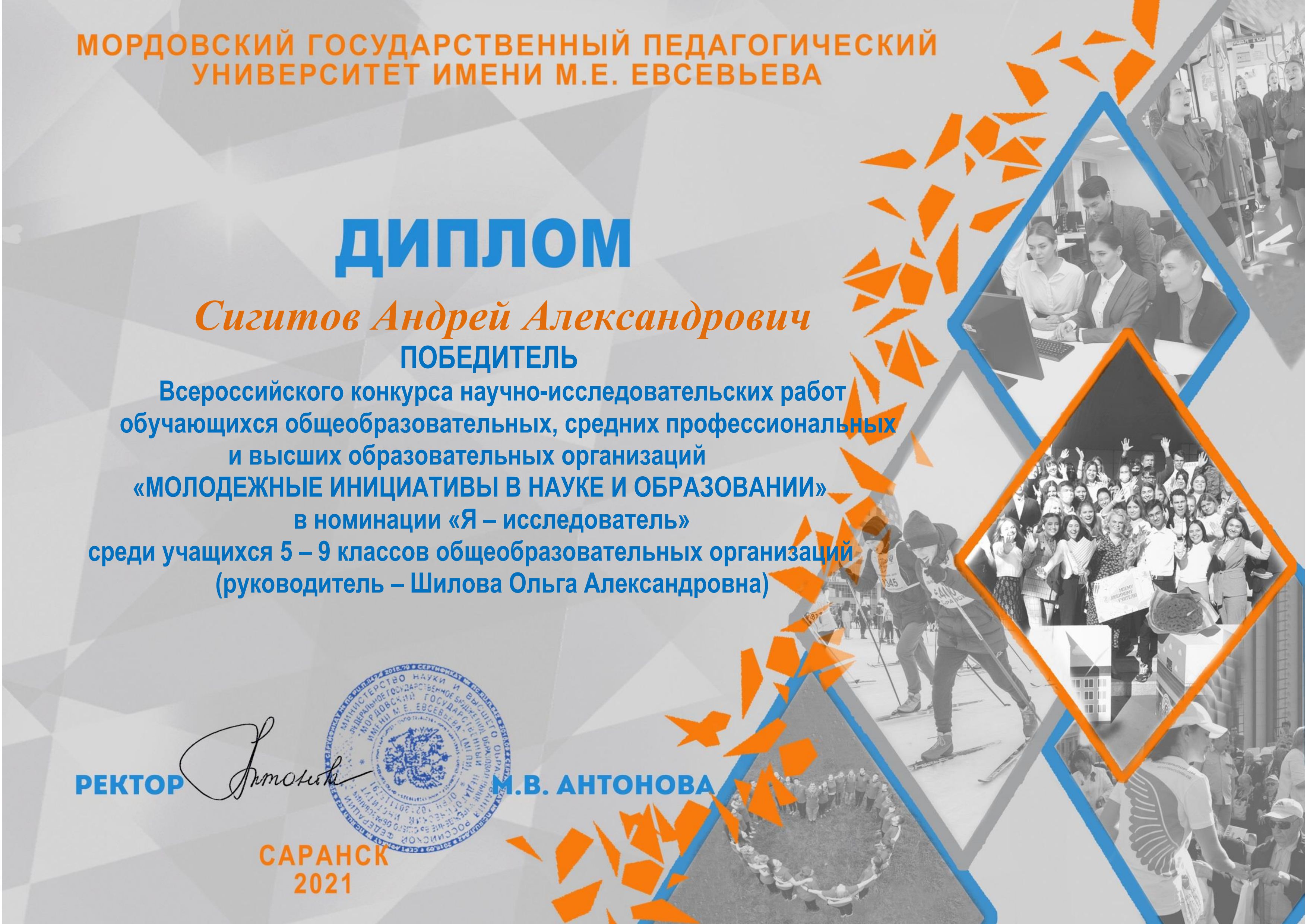 – в номинации «Я-исследователь» Сигитов Андрей Александрович (МБОУ «Гимназия № 42» г. Барнаул);