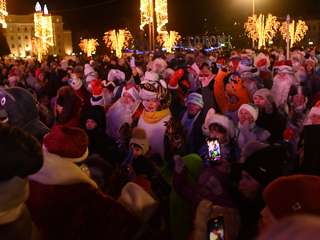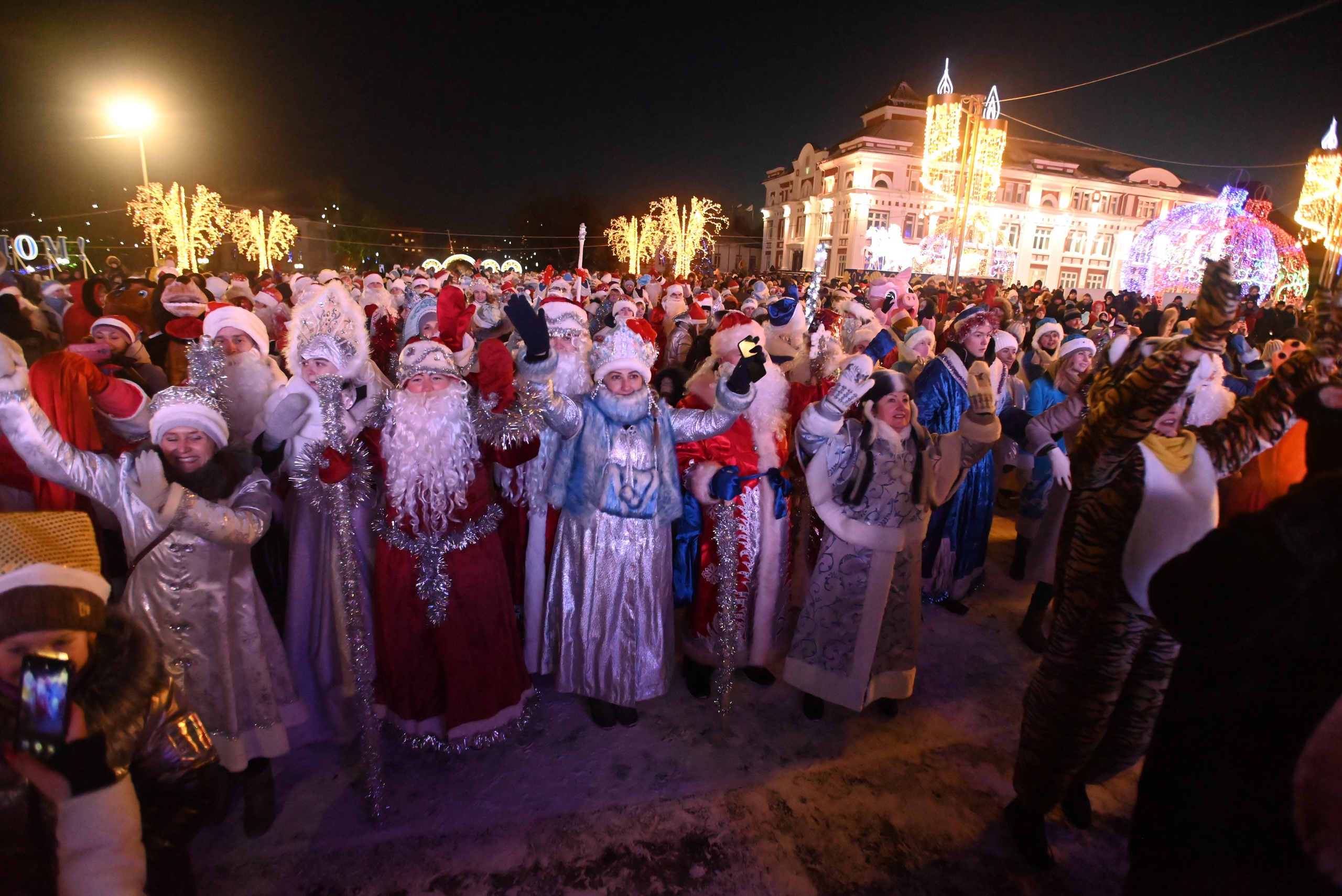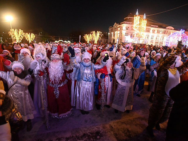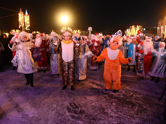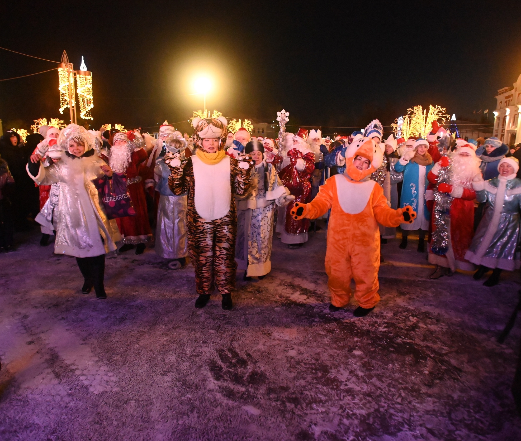 26 декабря на Советской площади жители и гости Саранска, в том числе и студенты МГПУ им. М. Е. Евсевьева приняли участие в праздничном шоу-параде Дедов Морозов и Снегурочек.
