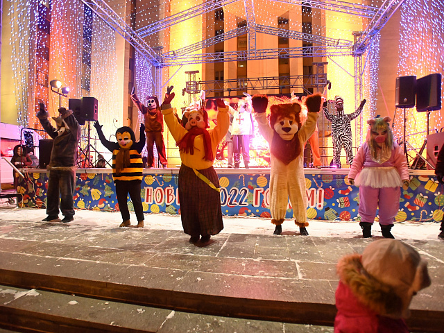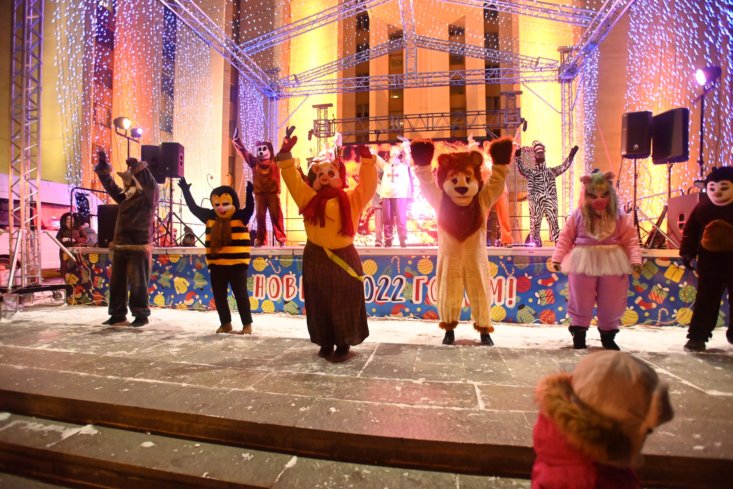 Шествие стартовало от часовни Александра Невского на площади Победы, конечной точкой шоу-парада стала сцена у Дома Республики. На сцене участников приветствовали символ 2022 года Тигр, символ Саранска Лиса и мордовский Дед Мороз (Якшам Атя) со своими помощниками Ловонь стирня, Келазь, Ведява и Вирява. Сказочные герои приветствовали жителей и гостей столицы республики на мордовском языке.