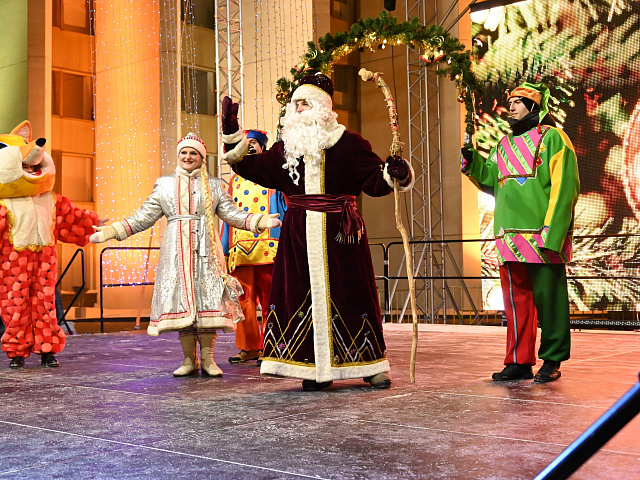 Позже на праздник на волшебных санях прибыли Дед Мороз и Снегурочка, чтобы открыть Главную новогоднюю Ёлку Мордовии. Зажечь огни на елке помогли все участники, прокричав волшебные слова: «Раз, два, три, ёлочка свети, сияй, гори!». Ёлка зажглась, значит, и праздник и отличное новогоднее настроение придут в каждый дом.