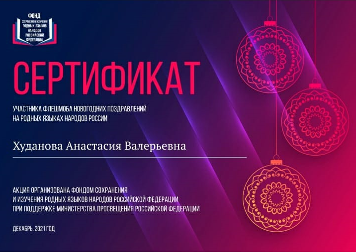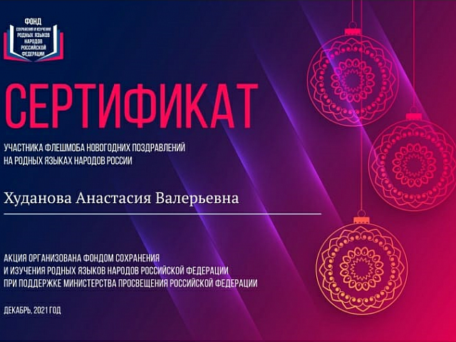 Студенты филологического факультета в декабре 2021 года стали активными участниками флешмоба новогодних поздравлений на родных языках народов России, проводимого Фондом сохранения и изучения родных языков народов Российской Федерации совместно с Министерством просвещения.