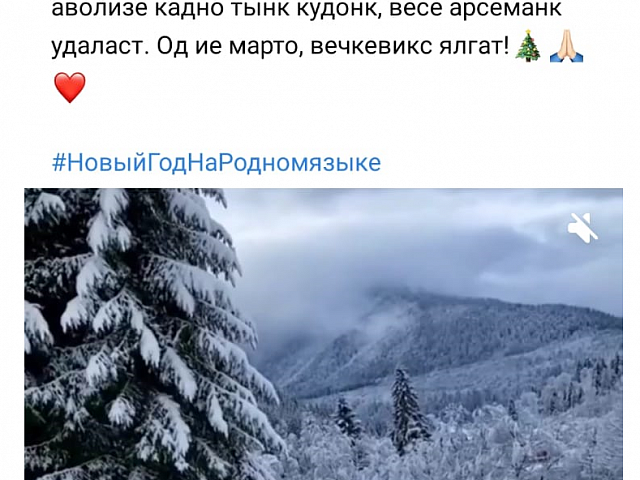 С Новым годом, дорогие друзья! Од киза мархта, кельгома ялгат! Од ие марто, вечкевикс оят! Яңа ел белән, кадерле дуслар!
