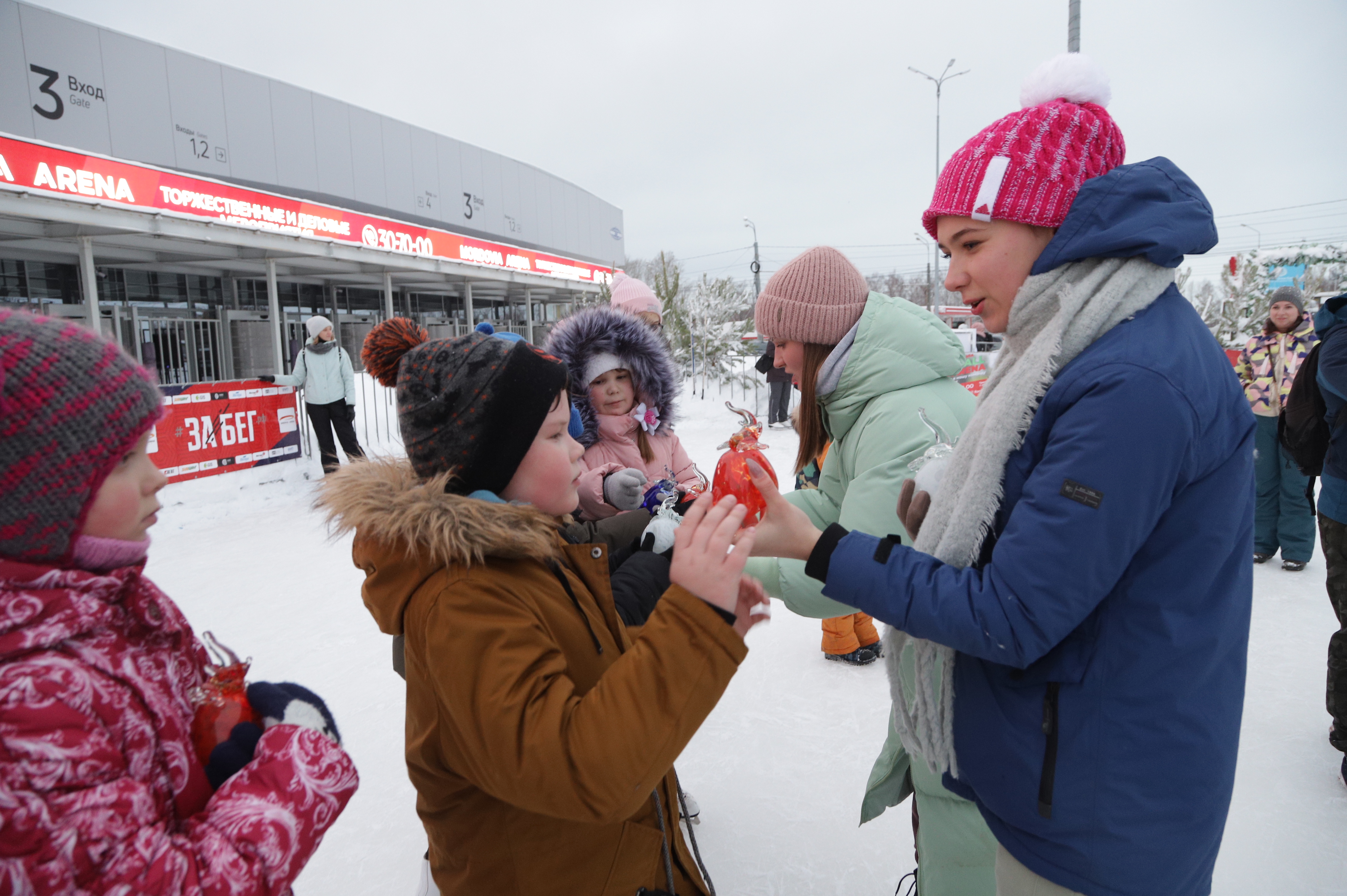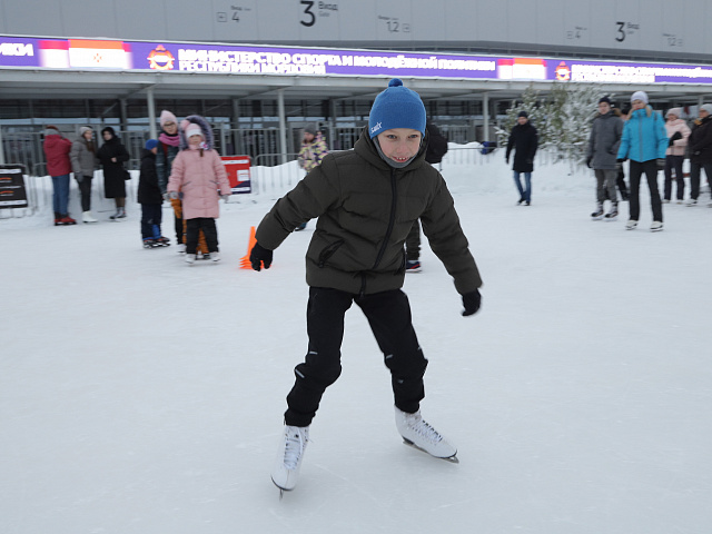 Участников ждала разнообразная и насыщенная спортивная и развлекательная программа: массовое катание на коньках, веселые старты для детей и взрослых, лыжные гонки. Любители хоккея смогли насладиться увлекательной экскурсией по хоккейному Центру. Для всех желающих была организована фотосессия с ростовыми куклами и, конечно, горячий вкусный чай со сладостями.