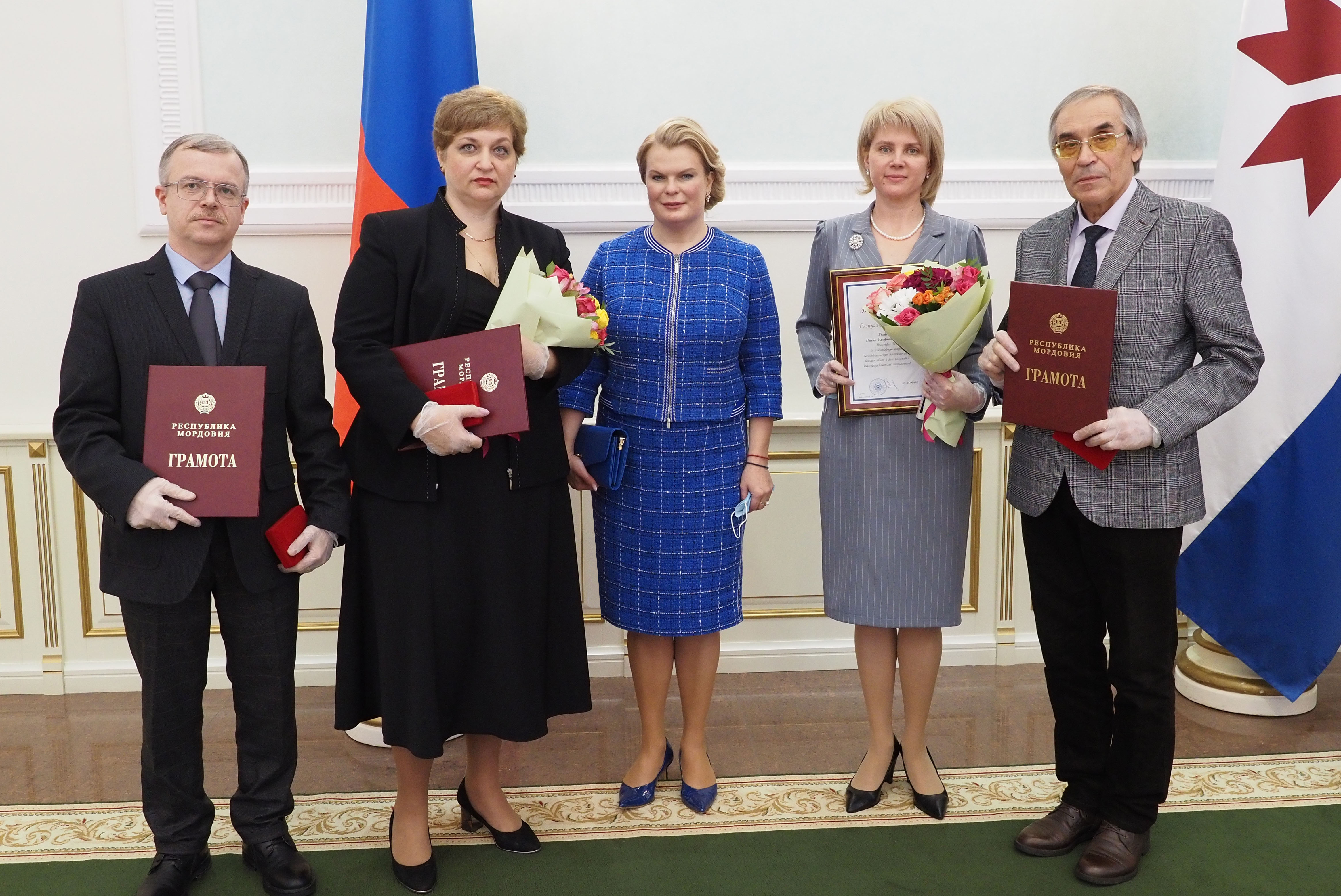 Почетной грамотой Республики Мордовия награждены: Надькин Тимофей Дмитриевич, доктор исторических наук, доцент кафедры отечественной и зарубежной истории и методики обучения факультета истории и права, Жиндеева Елена Александровна, доктор филологических наук, профессор кафедры литературы и методики обучения литературе филологического факультета, Якунчев Михаил Александрович, доктор педагогических наук, профессор кафедры биологии, географии и методик обучения естественно-технологического факультета.