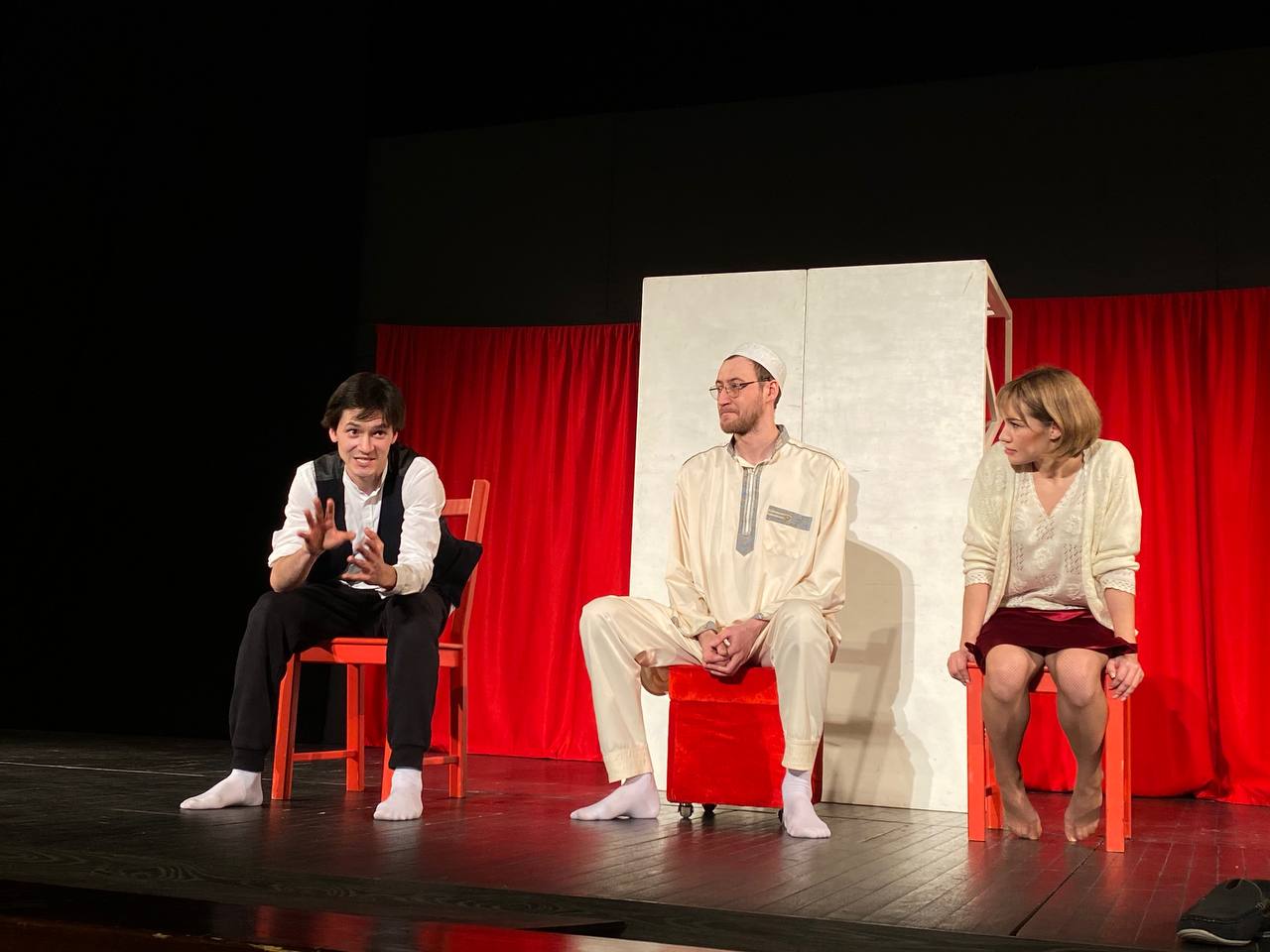 «Меня покорили молодые и талантливые актеры Молодежного «Театра на Булаке», которые не только отлично отыграли спектакль, но и провели большую встречу со зрителями, ответив на все интересующие вопросы. Сама постановка наполнена вечными вопросами и философскими подтекстами. Есть о чем подумать, есть над чем порассуждать. Спасибо за великолепные эмоции!» - Дина Аббясова, студентка филологического факультета.