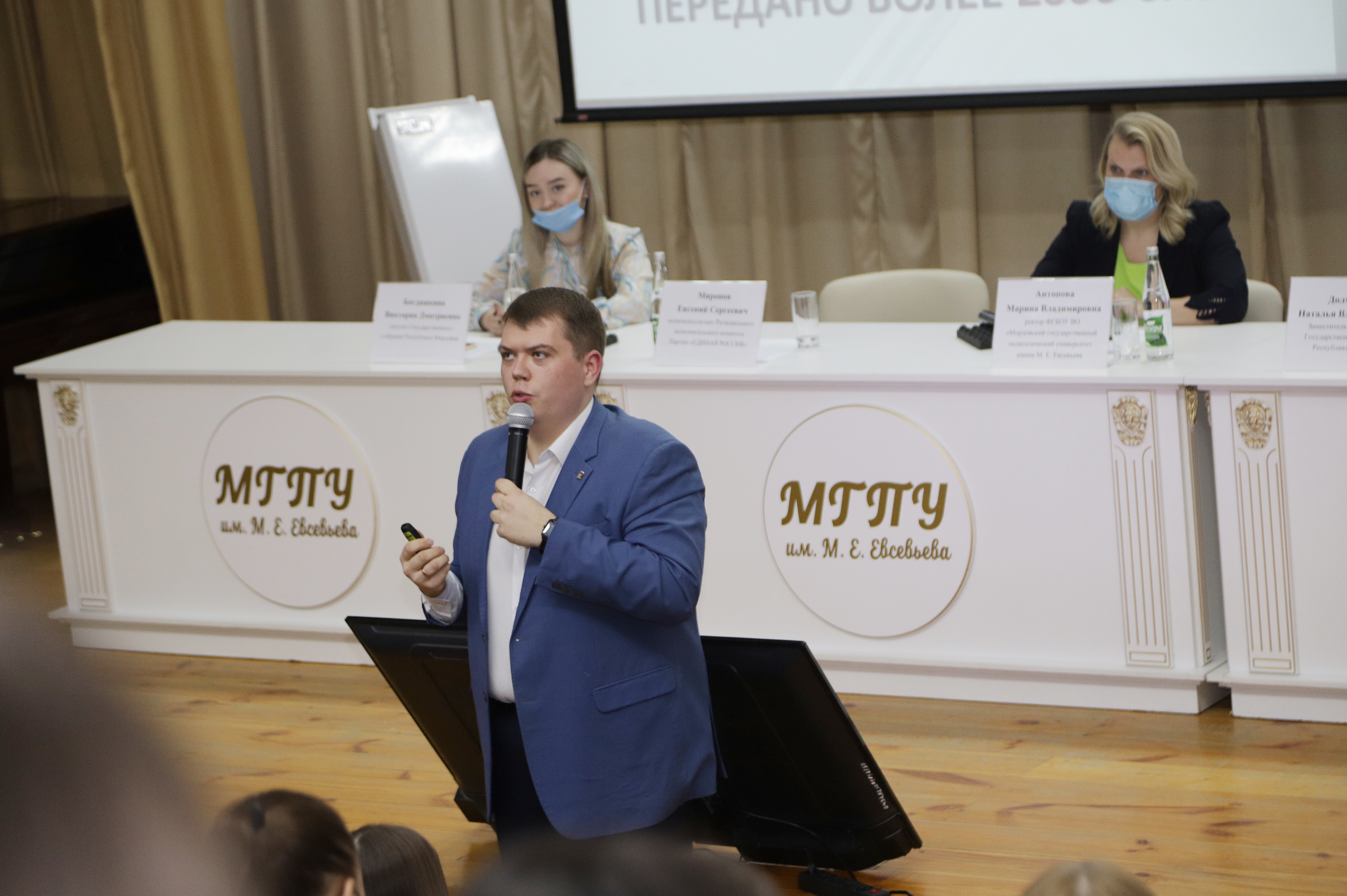 В мероприятии приняли участие: ректор педагогического университета Антонова Марина Владимировна, Заместитель Председателя Государственного Собрания республики Мордовия, Председатель комитета по социальной политике Наталья Владимировна Долматова, а также Миронов Евгений Сергеевич, политконсультант Регионального исполнительного комитета Партии «Единая Россия», Ульянов Данил Александрович, исполняющий обязанности руководителя Мордовского регионального отделения Всероссийской общественной организации «Молодая Гвардия Единой России» и Богдашкина Виктория Дмитриевна, Депутат Государственного Собрания Республики Мордовия.