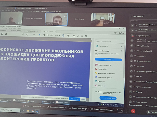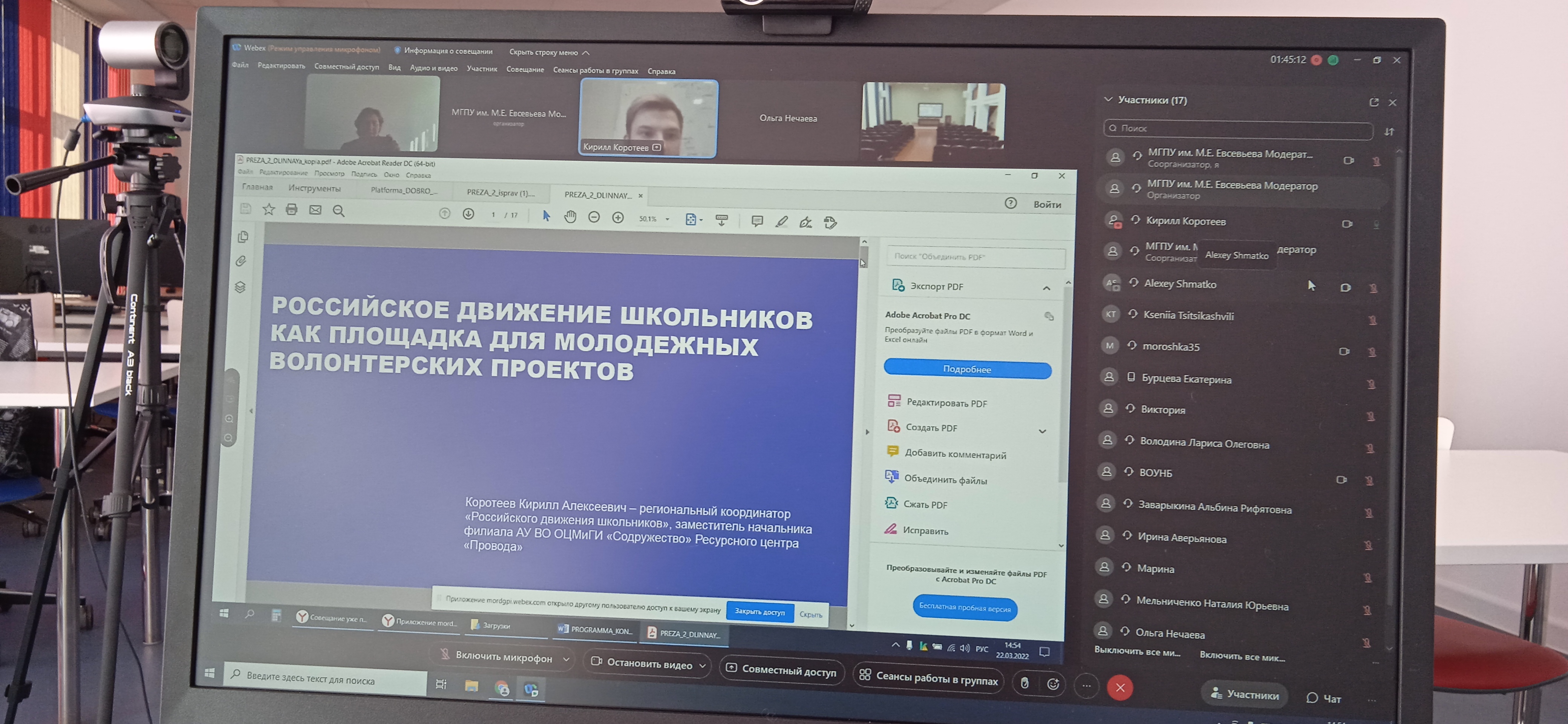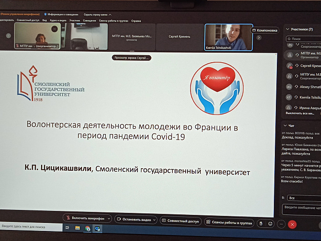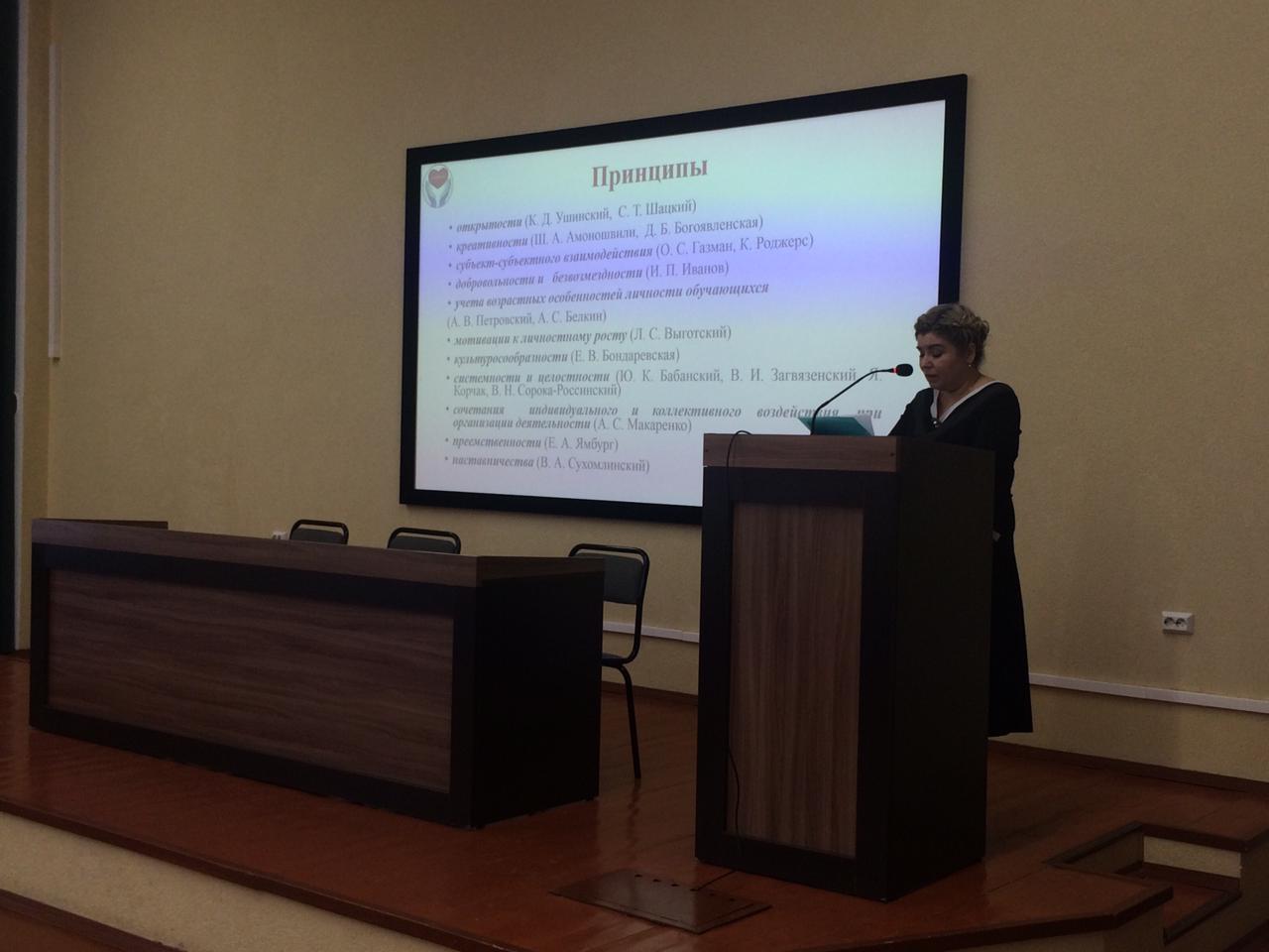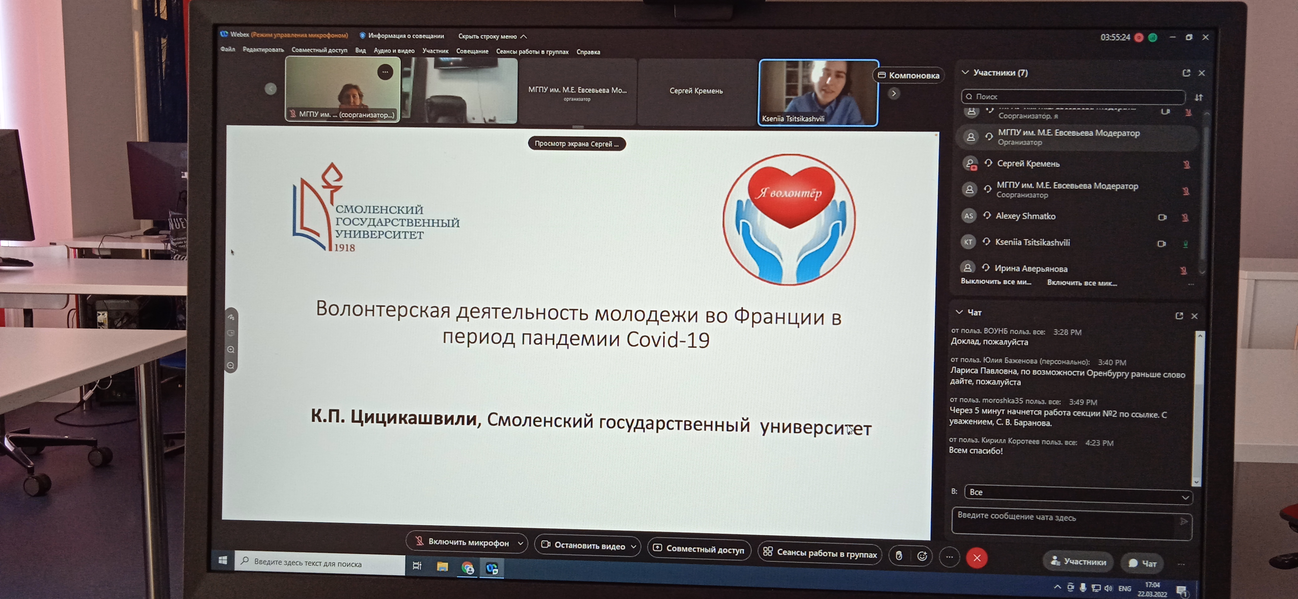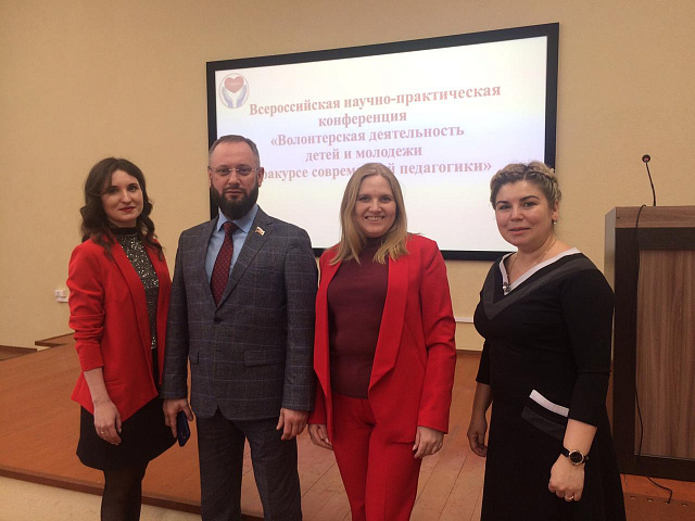 Выступление В. П. Голованова, главного научного сотрудника Института изучения детства, семьи и воспитания Российской академии образования, доктора педагогических наук вызвало живой интерес гостей. Виктор Петрович отметил важность организации волонтерской деятельности в системе дополнительного образования. С. В. Баранова, докторант кафедры педагогики МГПУ обозначила итоги осуществляемой экспериментальной работы по организации социальной самореализации детей и подростков в волонтерской деятельности. По словам Ж. Э. Балаевой, студентки 2 курса филологического факультета, руководителя волонтерского корпуса, необходимо вовлекать студентов педагогических вузов в волонтерскую деятельность, особенно если она связана с будущей профессией. Так, наши студенты осуществляют педагогическую поддержку детей из ЛНР и ДНР, прибывших на территорию Российской Федерации.