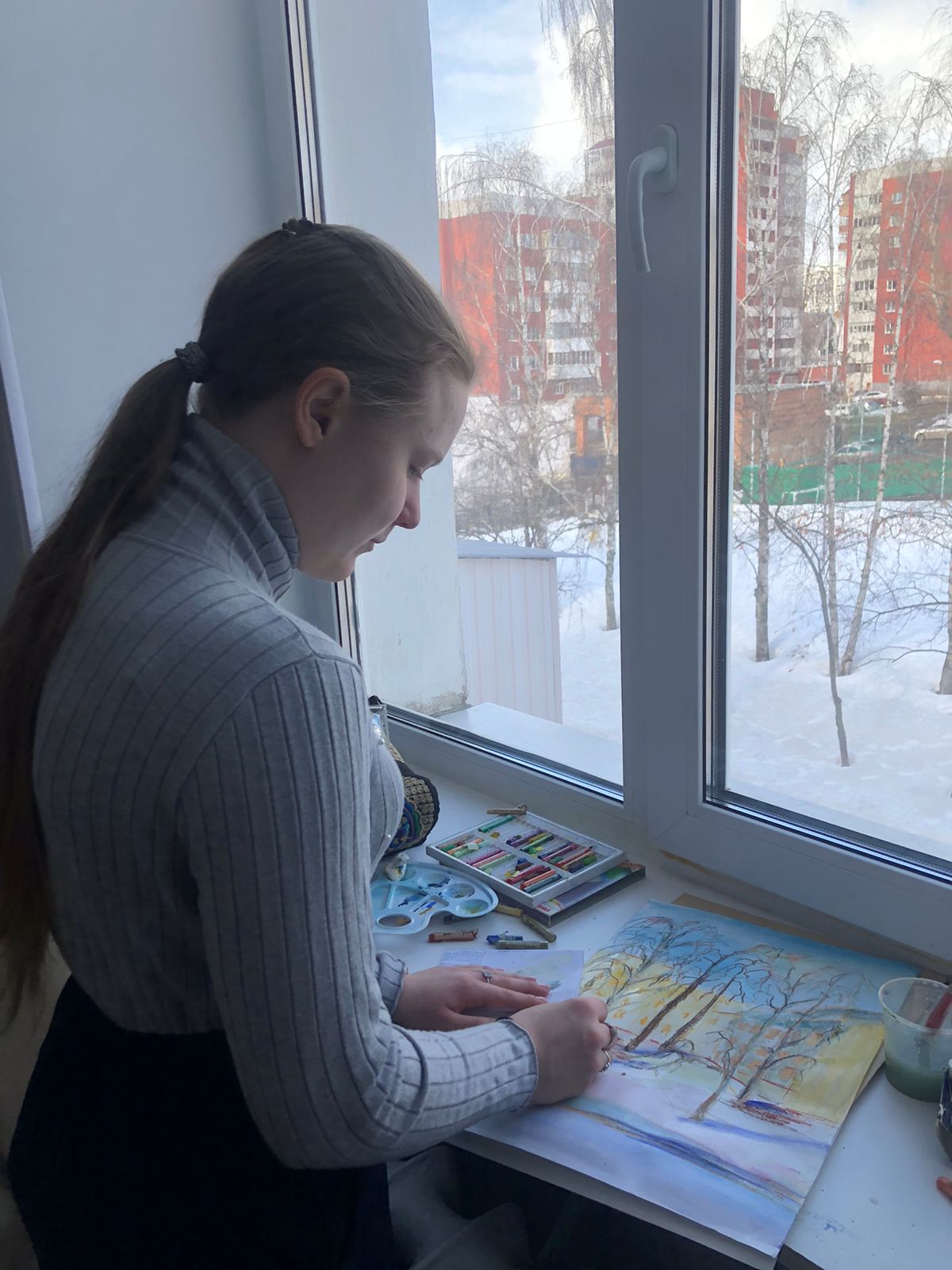 УЧАСТНИКИ ТВОРЧЕСКИХ КАНИКУЛ ОСВОИЛИ СМЕШАННУЮ ГРАФИЧЕСКУЮ ТЕХНИКУ, ВЫПОЛНИЛИ С НАТУРЫ ЗАРИСОВКИ ВЕСЕННЕГО ПЕЙЗАЖА, ПЕРЕДАЛИ В РИСУНКАХ СОСТОЯНИЕ ПРОБУЖДАЮЩЕЙСЯ ПРИРОДЫ. РЕШИЛИ В БЛИЖАЙШЕЕ ВРЕМЯ ОРГАНИЗОВАТЬ ВЫСТАВКУ ПОД НАЗВАНИЕМ «ДЫХАНИЕ ВЕСНЫ».