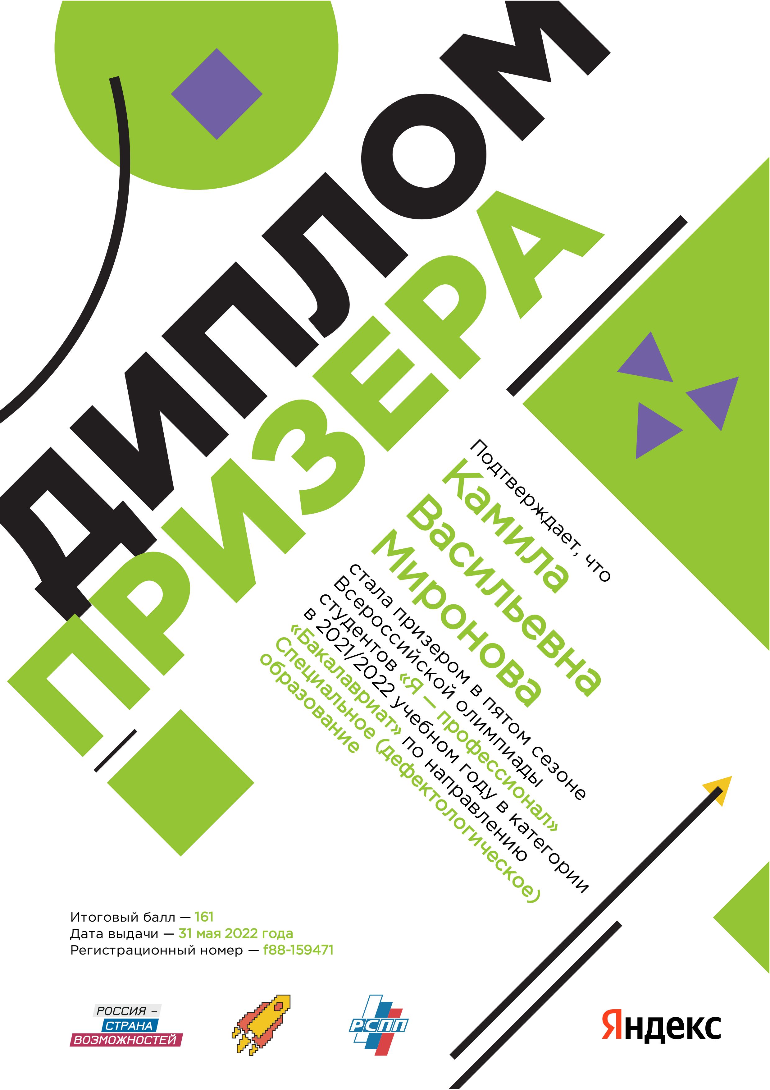 Тюрина Марина Владимировна, группа дди-120 и Миронова Камила Васильевна, группа ДДИ-120 - призеры в пятом сезоне всероссийской олимпиады студентов «Я - профессионал».