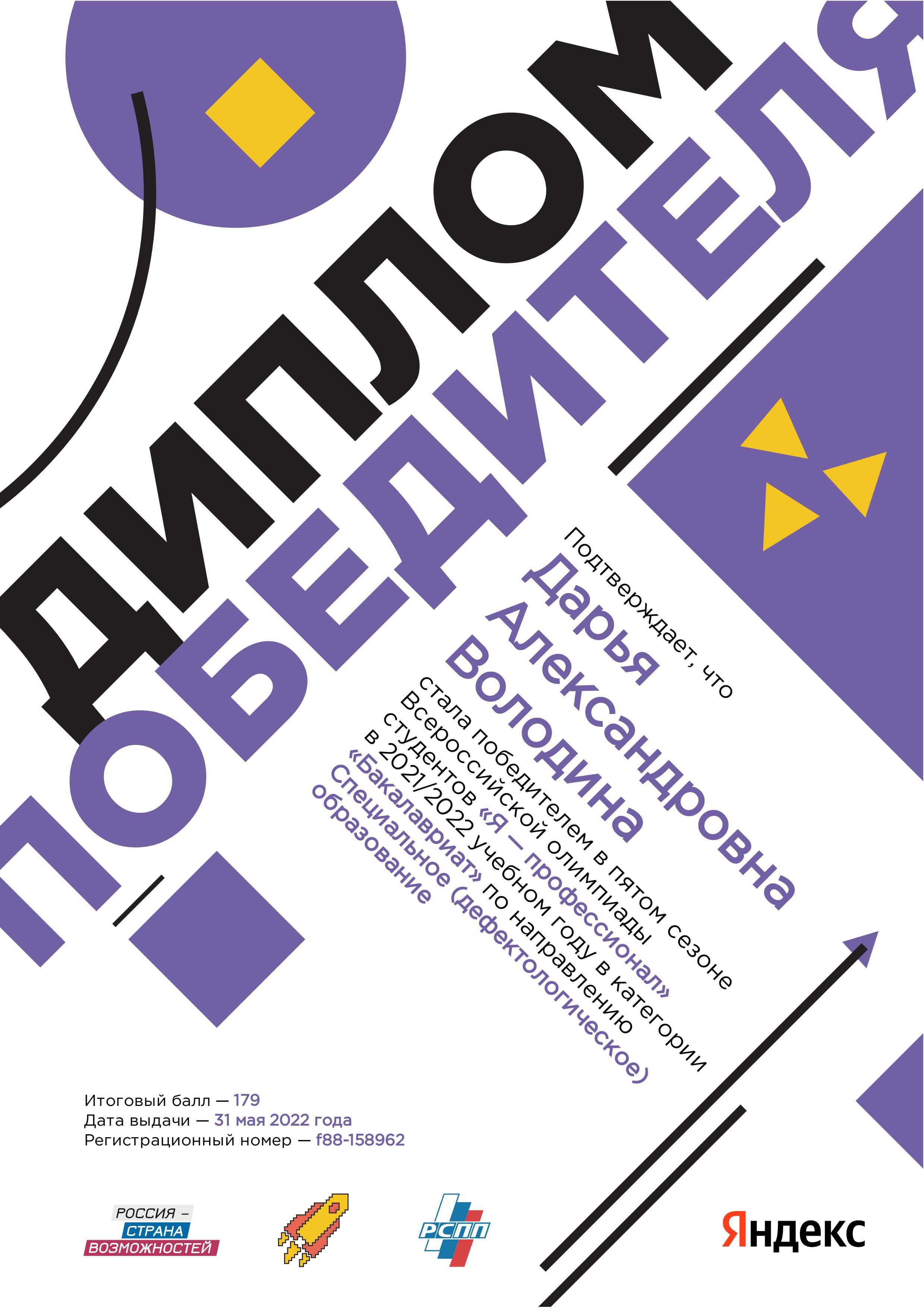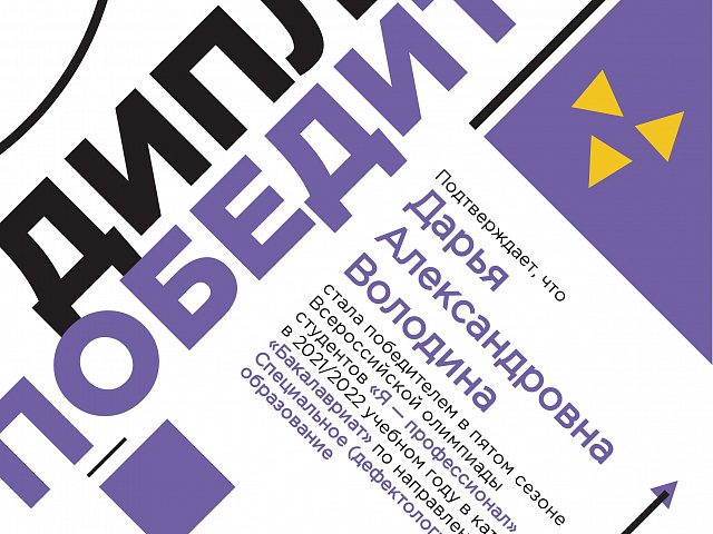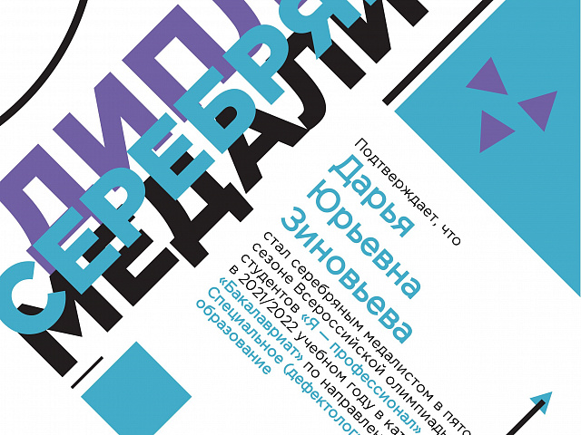 Зиновьева Дарья Юрьевна, группа ДДЛ-120, серебряный медалист в пятом сезоне всероссийской олимпиады студентов «Я - профессионал»;