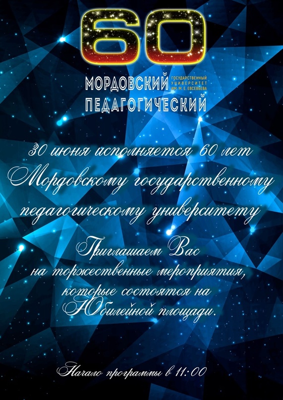 Приглашаем студентов, преподавателей и сотрудников на празднование 60-летнего юбилея Мордовского государственного педагогического университета имени М. Е. Евсевьева!