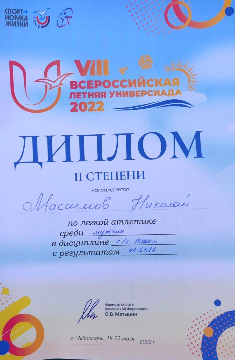 Финальные соревнования VIII Всероссийской летней Универсиады 2022 года проходили в 5 регионах Российской Федерации. В финальных соревнованиях Универсиады 2022 года по боксу в Ульяновске студент 4 курса факультета физической культуры Козлов Денис завоевал бронзовую награду соревнований в весовой категории до 92 килограмм. В финальных соревнованиях по легкой атлетике Чебоксарах в дисциплине спортивная ходьба (дистанция 10000 метров) студент 3 курса факультета физической культуры Максимов Николай завоевал серебряную награду. VIII Всероссийская летняя Универсиада 2022 года объединила студентов 70 регионов из более чем 170 вузов. Традиционно студенческий спорт является стартовой площадкой для спортсменов участвующих в Олимпийских играх!