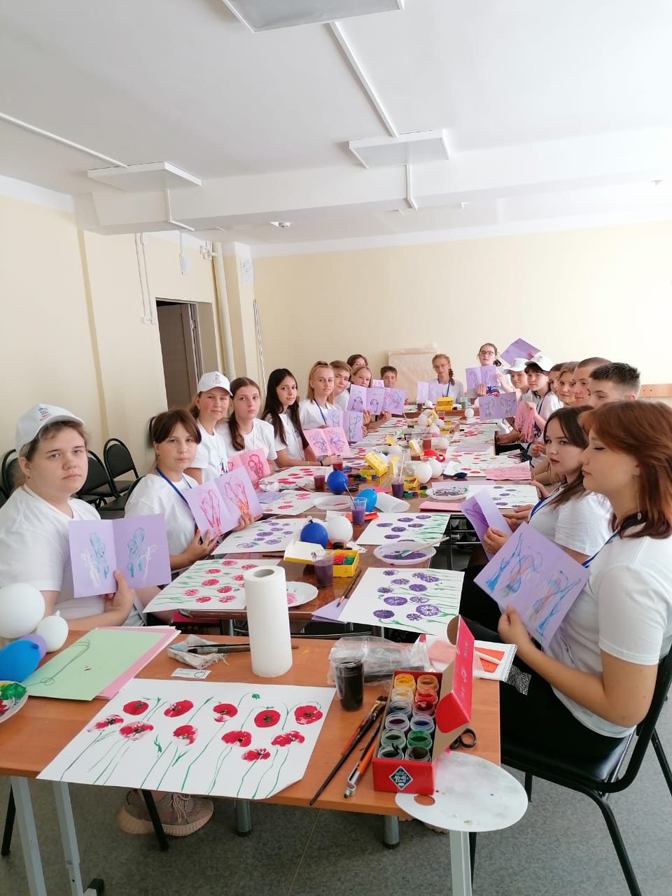 Во второй день работы лагеря для школьников был проведен мастер-класс «Использование нетрадиционных техник в создании абстрактной композиции в дизайне». Его организовали старшие преподаватели кафедры художественного и музыкального образования МГПУ имени М.Е. Евсевьева Матвеева Надежда Васильевна и Щербинкина Елена Васильевна. Ребятам были продемонстрированы приемы создания абстрактной композиции в технике ниткографии. Особый интерес вызвала техника создания интерьерной картины с помощью воздушных шаров. Дети с удовольствием создавали яркие композиции, которые могут украсить интерьер школьных столовых. Творческий процесс был увлекательным, и каждый участник мастер-класса уносил с собой частицу тепла и вдохновения, вложенного в свою работу.