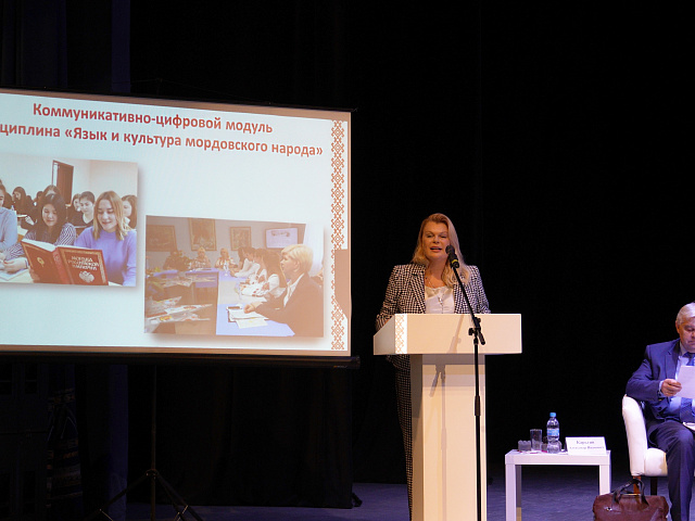 Ректор университета Марина Владимировна Антонова выступила экспертом диалога «Творческий потенциал молодежи как ресурс, необходимый современному обществу». Она представила приоритетные направления работы по сохранению и продвижению родного языка и культуры в современном образовательном пространстве педагогического вуза, презентовала лучшие языковые и этнокультурные инициативы преподавателей и студентов. Марина Владимировна подчеркнула, что в университете созданы все условия для внедрения эффективных методов работы с мордовской молодежью и поддержки социально значимых студенческих инициатив.