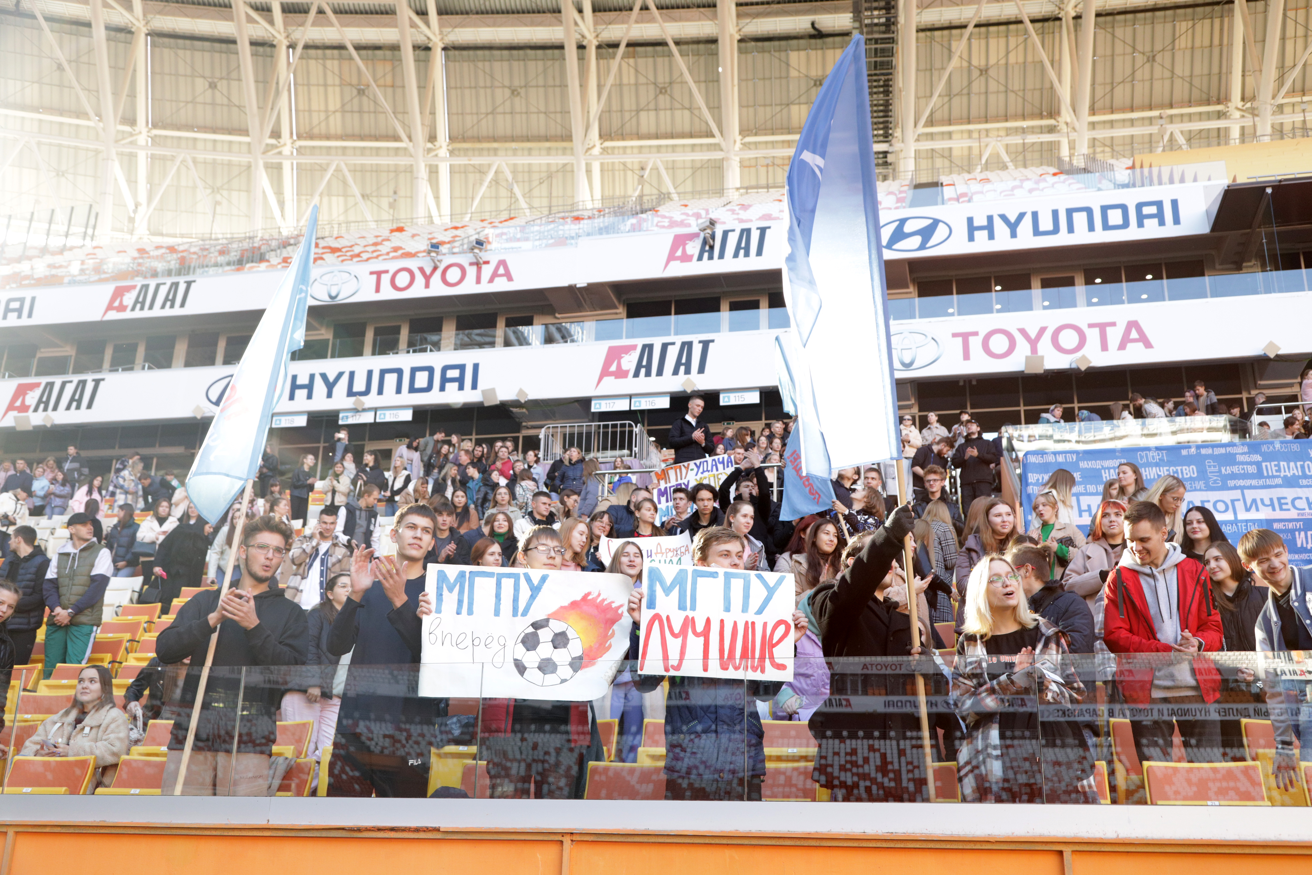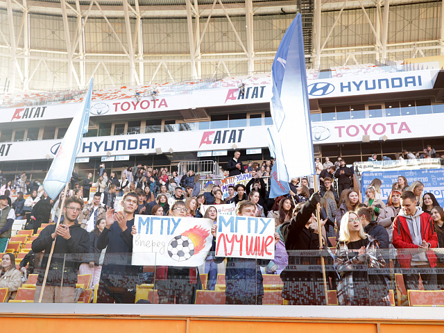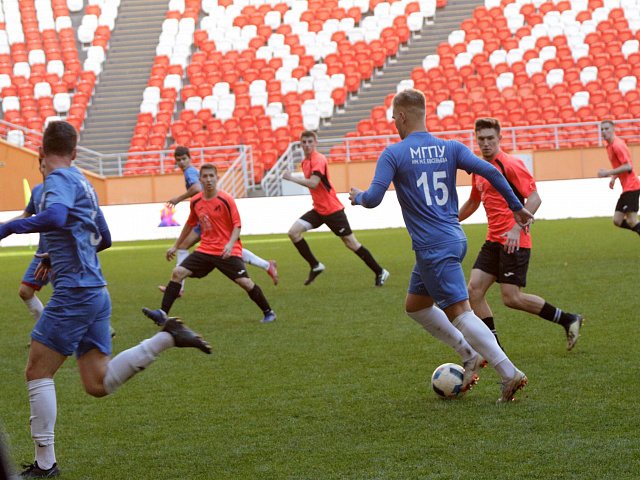 9 октября на стадионе «Мордовия Арена» состоялся матч за Суперкубок Республики Мордовия по футболу. На поле встретились студенческие команды МГПУ имени М.Е. Евсевьева и МГУ имени Н.П. Огарёва. На протяжении двух таймов команда нашего педагогического показывала красивую игру, на трибунах чувствовалась сильная поддержка болельщиков, которая обеспечивала единый командный дух и сплочение коллектива МГПУ. Во втором тайме сборная команда педагогического университета уступила соперникам один мяч, матч завершился со счетом 1:0 в пользу МГУ.