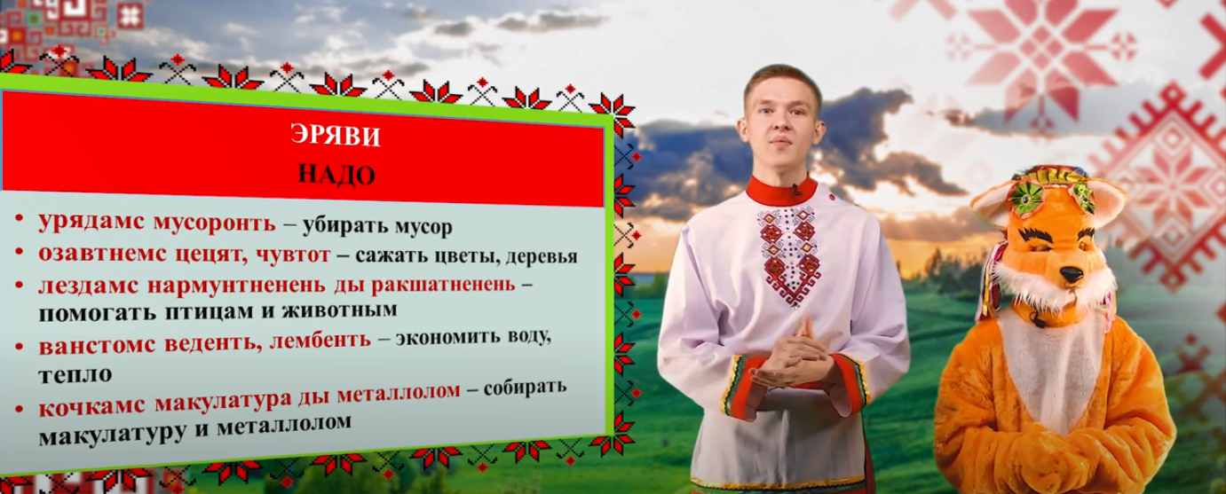 Онлайн-школа мордовских языков подготовила новые видеоуроки по теме «Ванфтость перьфпяльть! / Ванстодо пертьпельксэнть!» («Берегите природу!») и предлагает посетить их 15 октября 2022 года. Участники школы соприкоснутся с красотой родной природы, узнают о заповедниках Мордовии, увидят, к чему может привести загрязнение окружающей среды. Предложенные слушателям задания на мокшанском и эрзянском языках способствуют воспитанию экологической культуры, ответственного отношения к природе и к людям.
