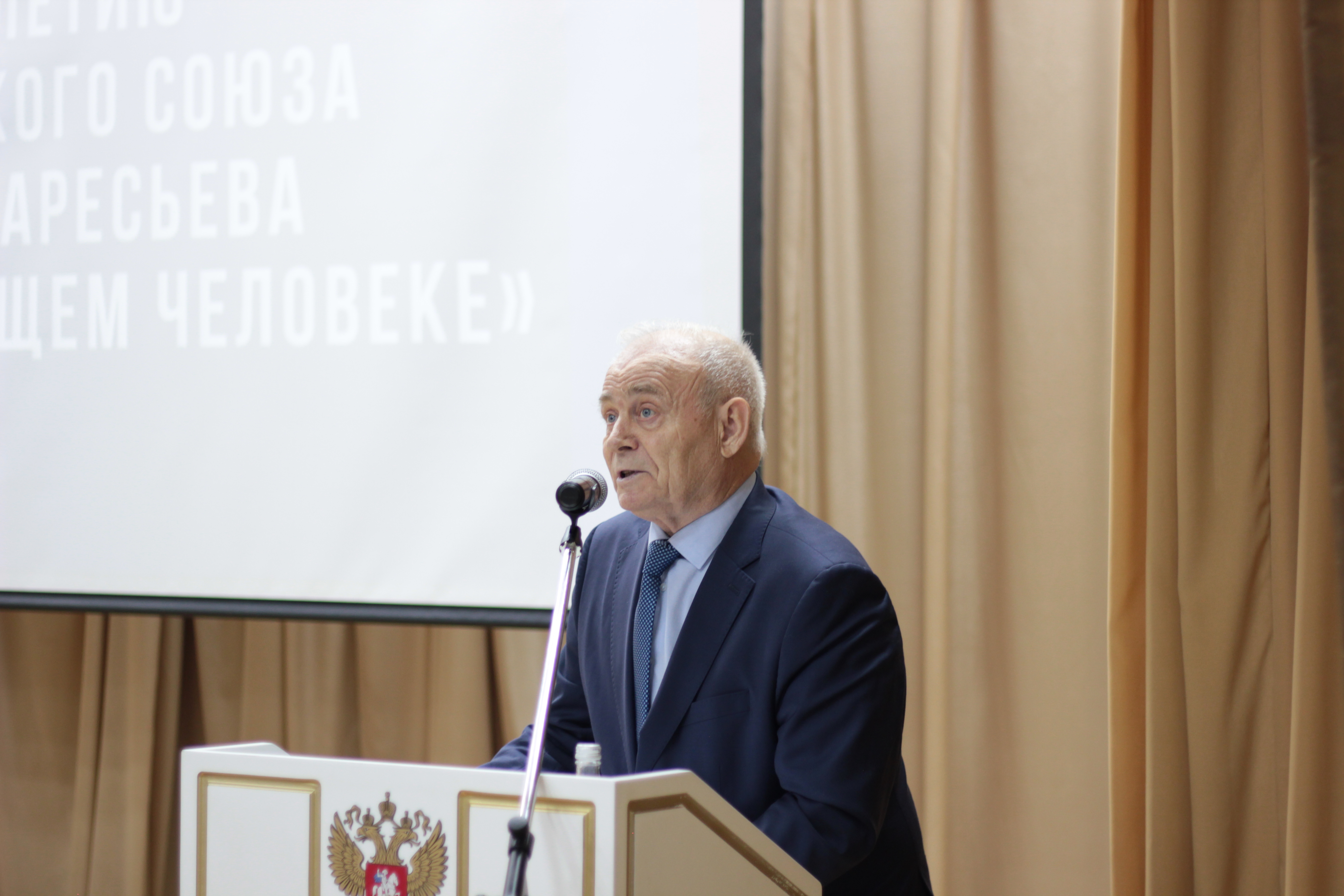 Рогачев Владимир Ильич, доктор филологических наук, председатель Совета ветеранов МГПУ, выступил с докладом о подвиге знаменитого летчика.