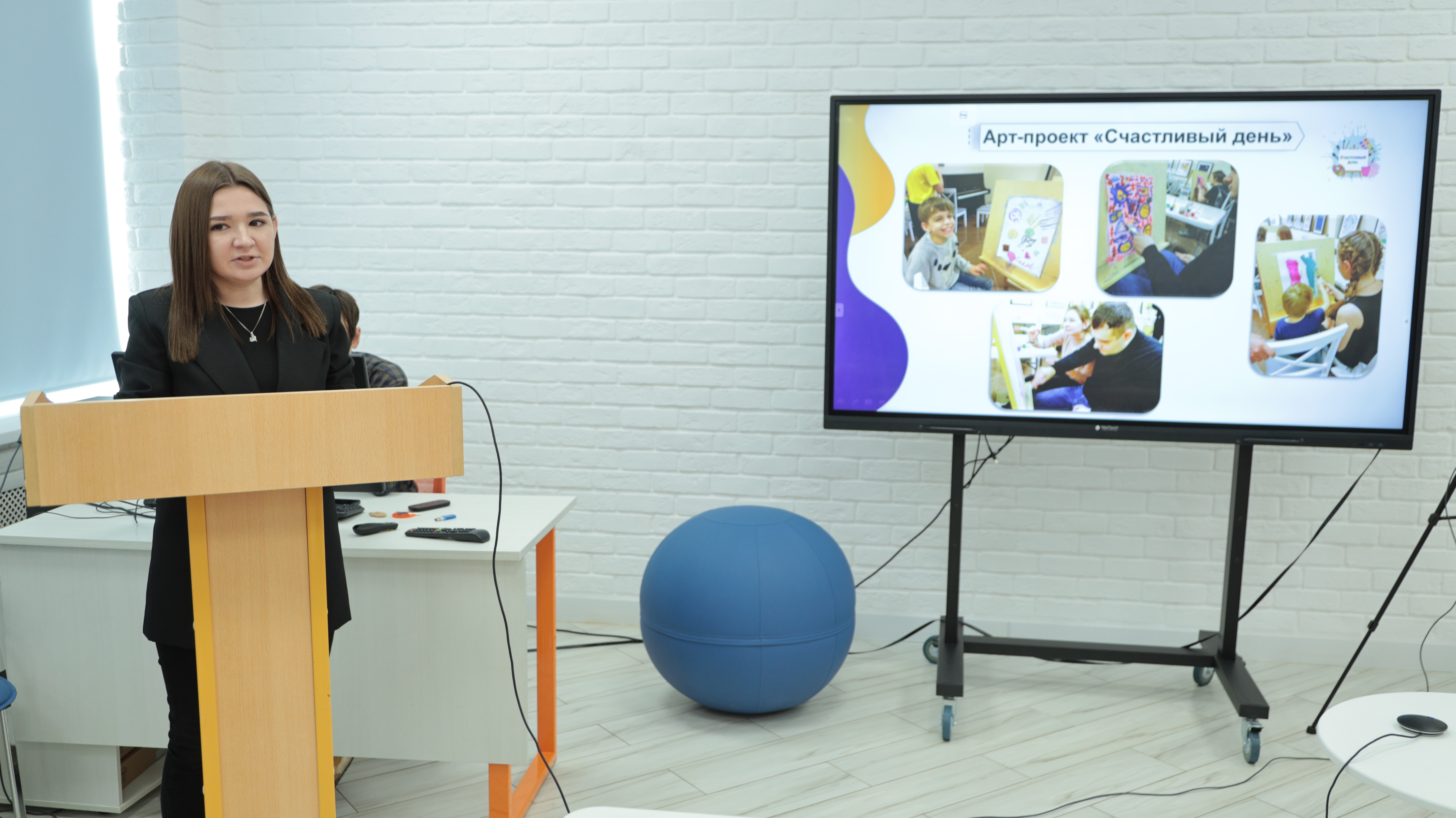 В дискуссии опытом работа мини-детского сада дневного кратковременного пребывания детей с ОВЗ на базе игровой комнаты проекта «ТерриТория» «Солнце и Луна» поделилась Гулина Яна Андреевна. Она же рассказала об арт-проекте «Счастливый день», в котором волонтеры оказывают по воскресеньям помощь детям ОВЗ, используя такие активные техники как пластилинография, песочная терапия, игратерапия, нетрадиционные техники рисования.