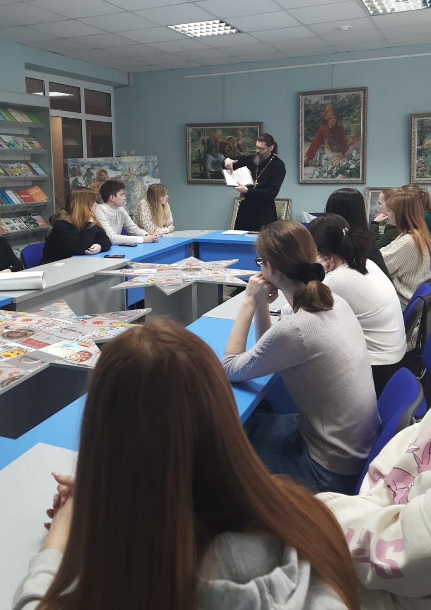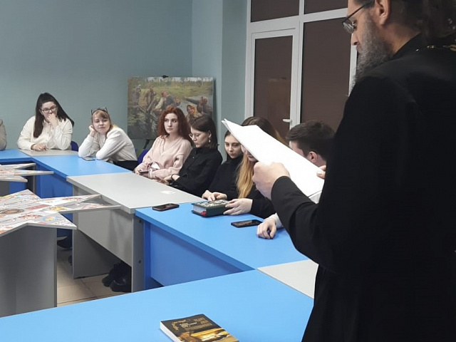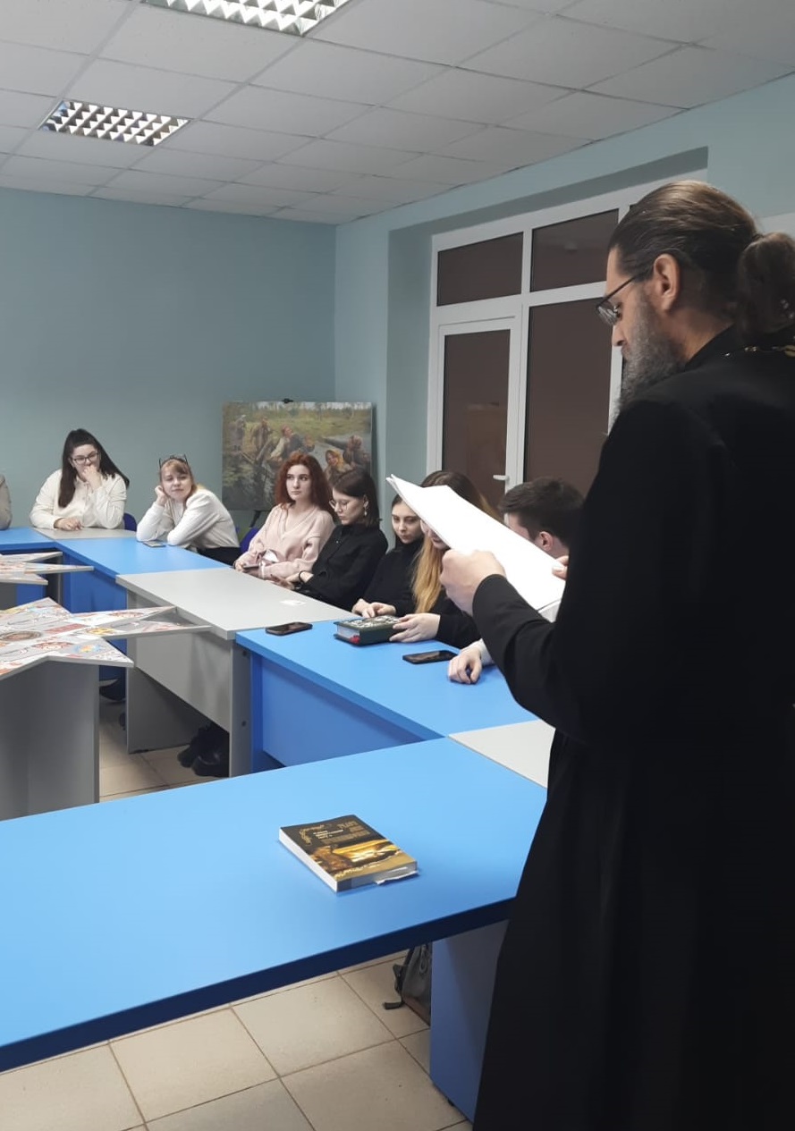 В рамках мероприятия иерей Георгий (Горюнов), настоятель студенческого храма Святой Татианы рассказал студентам-филологам об истории возникновения православных книг, правилах их печати. У слушателей была возможность изучить элементы оформления православной книги, ее оклад. В ходе интерактивного взаимодействия слушатели задавали вопросы о месте религии и веры в жизни современного человека, потенциале духовного развития современной молодежи, роли православной книги в жизни современного общества.