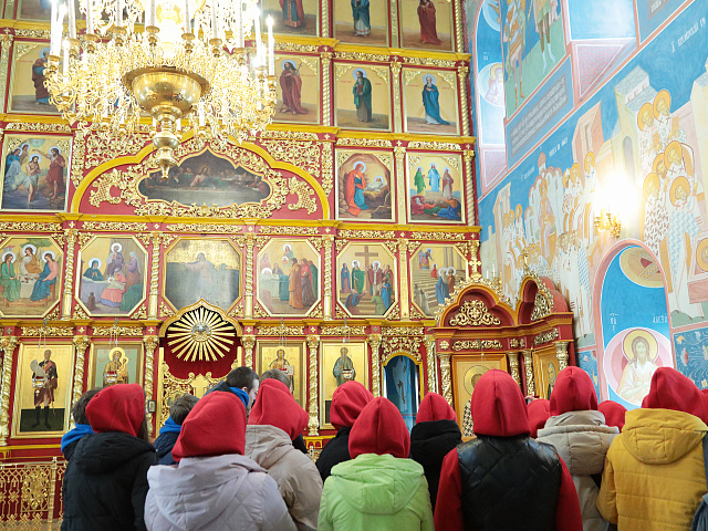 В первой половине дня участники посетили Иоанно-Богословский Макаровский мужской монастырь. Иеродиакон Маркел провел для ребят познавательную экскурсию, рассказал о святынях монастыря, познакомил с историей и современной жизнью обители.