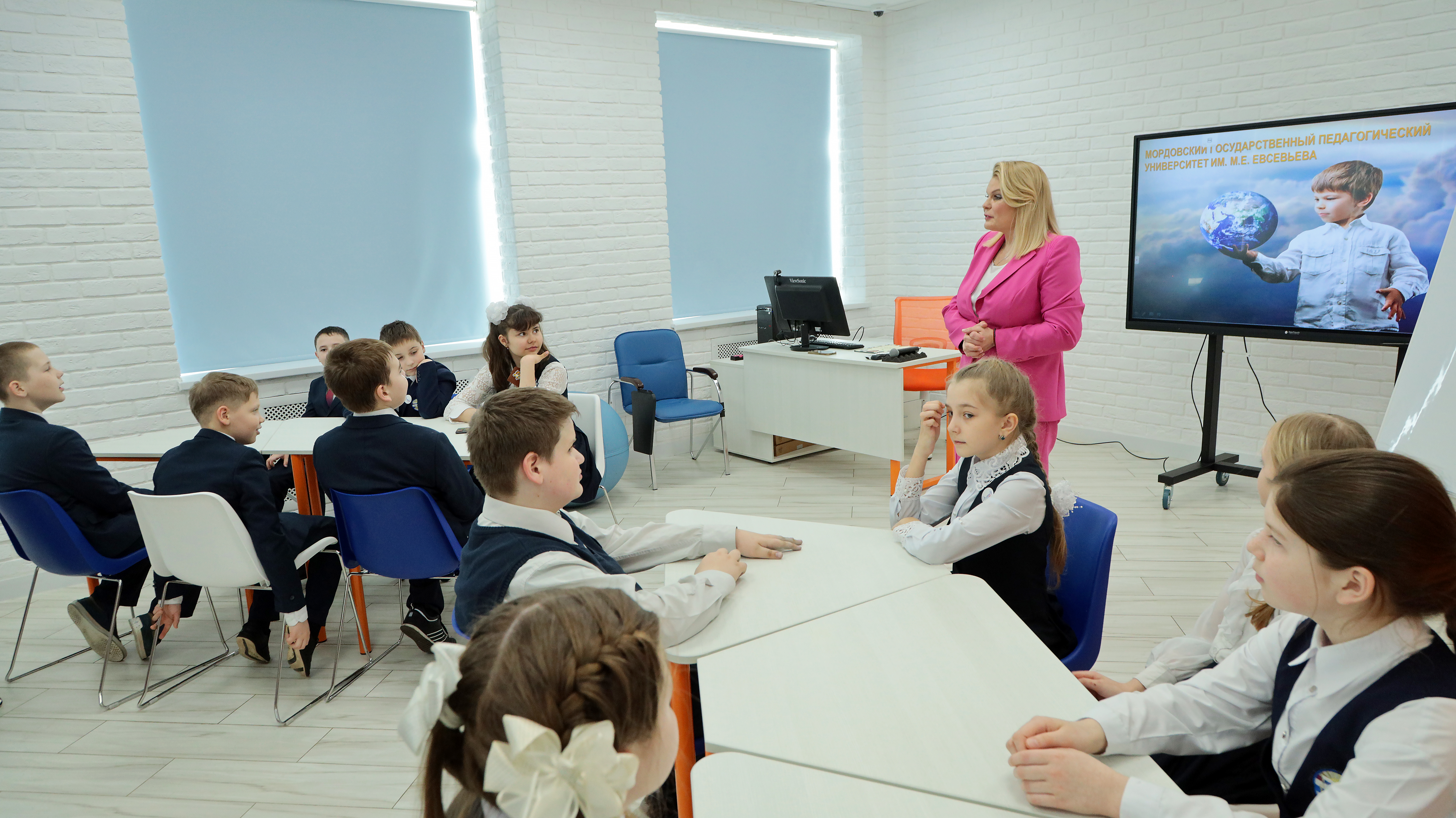 5 апреля 2023 года на площадке Межфакультетского технопарка универсальных педагогических компетенций ректор МГПУ им. М.Е. Евсевьева Марина Антонова открыла цикл профориентационных занятий и провела урок для младших школьников «Ателье профессий». В этот день гостями университета стали ученики 4 класса МОУ «Лицей № 26». Они узнали о профессиях будущего, приняли участие в профессиональных пробах в IT-лаборатории и лаборатории робототехники, а так же выступили в роли дизайнеров.