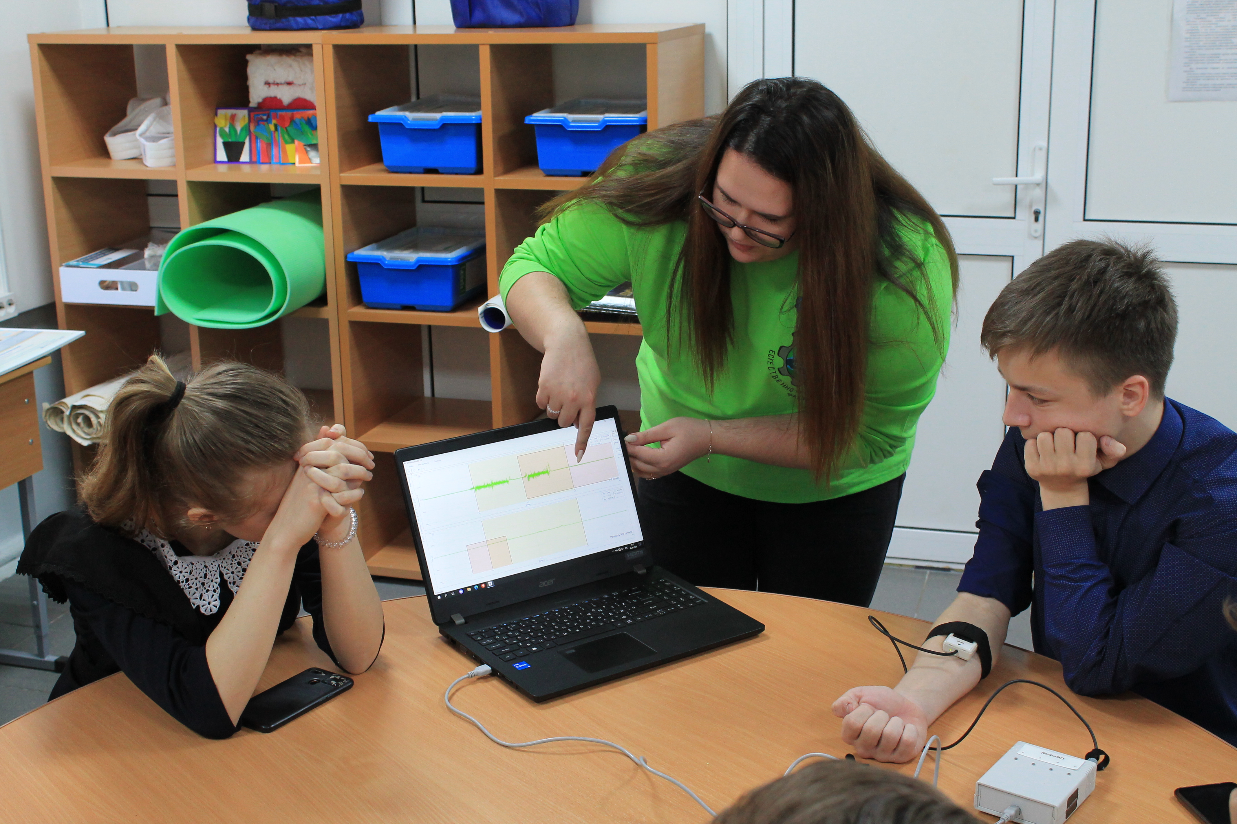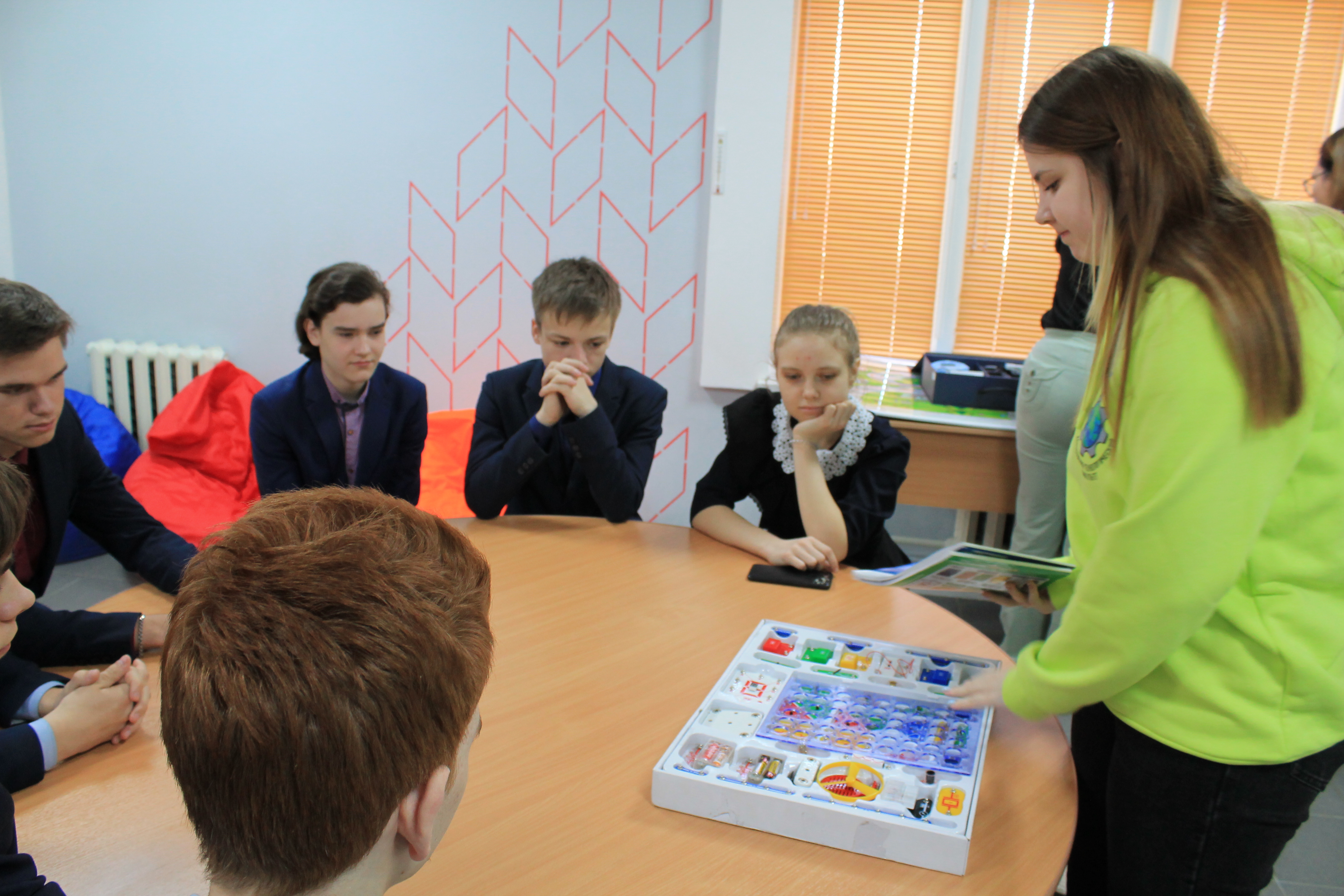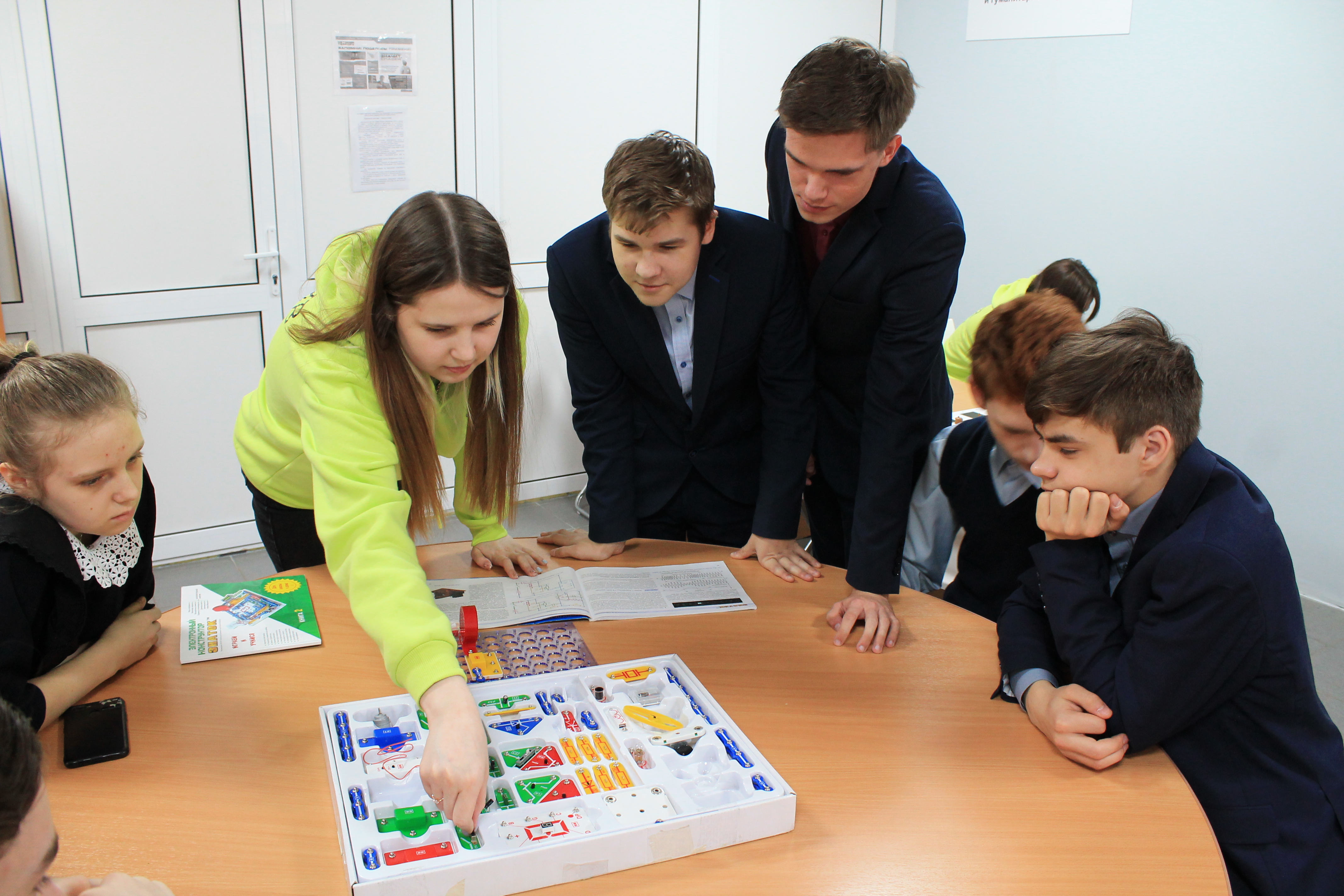 Студенты продемонстрировали мастер классы по использованию цифровой лаборатории BiTronics Studio по нейротехнологии для изучения физиологии человека, познакомили с образовательными роботами Robomaster предназначенных для развития навыков программирования и собрали электронный конструктор «Знаток».
