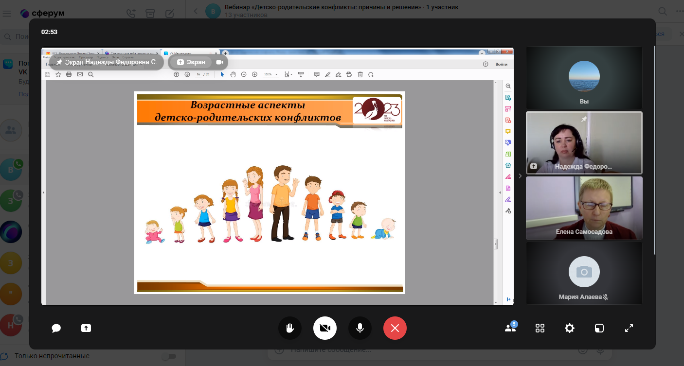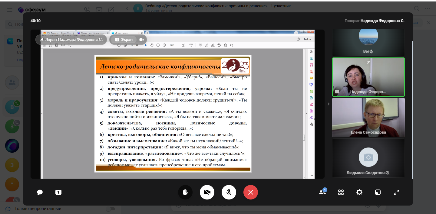 В процессе онлайн-диалога обсуждали тему конфликтов родителей и детей разного возраста. Акценты были сделана на причины и особенности разрешения детско-родительских противоречий на этапах детства. Особый интерес у родителей вызвали предложения для снижения конфликтных ситуаций с подростками и обучающимися юношеского возраста.