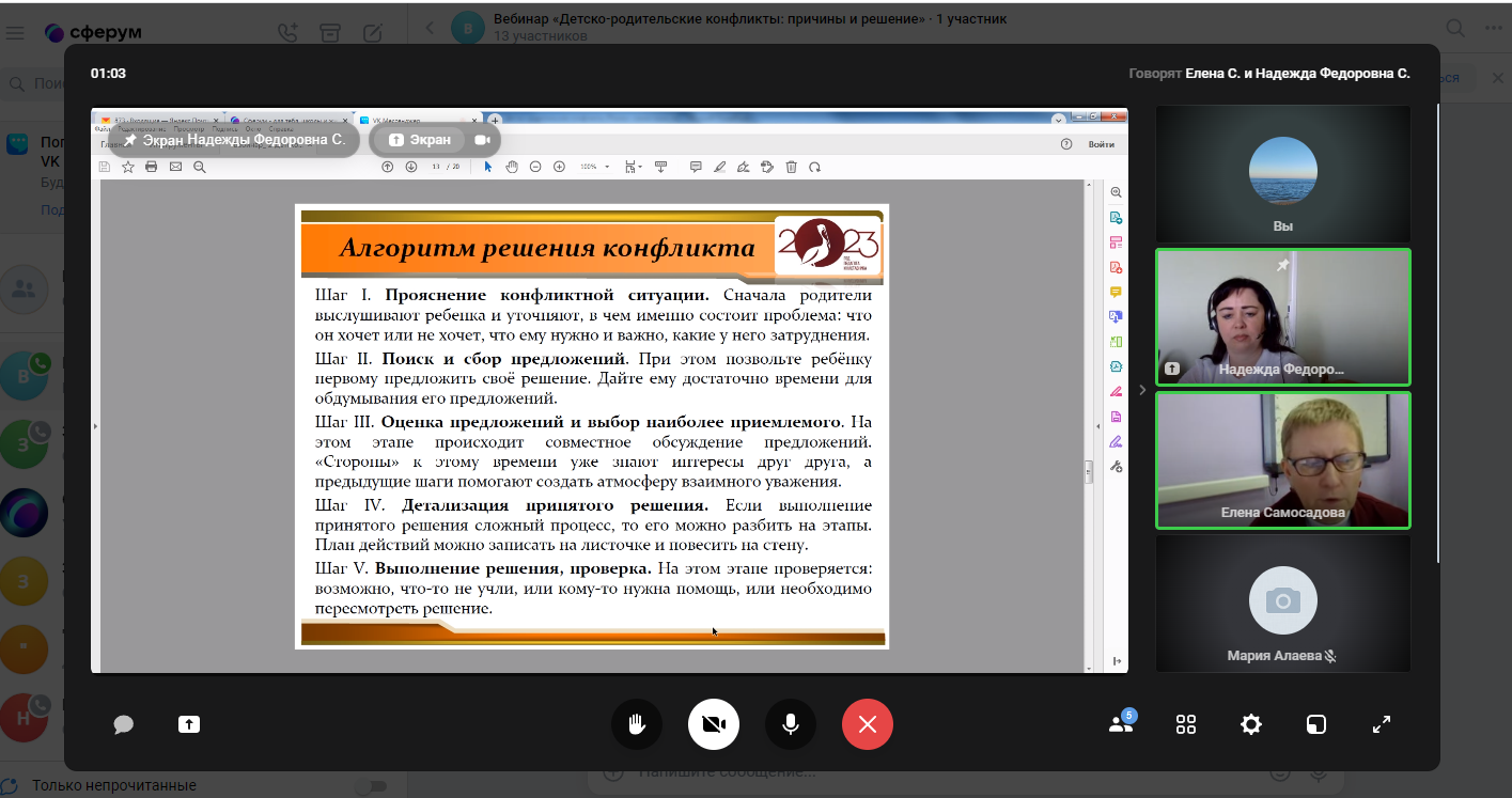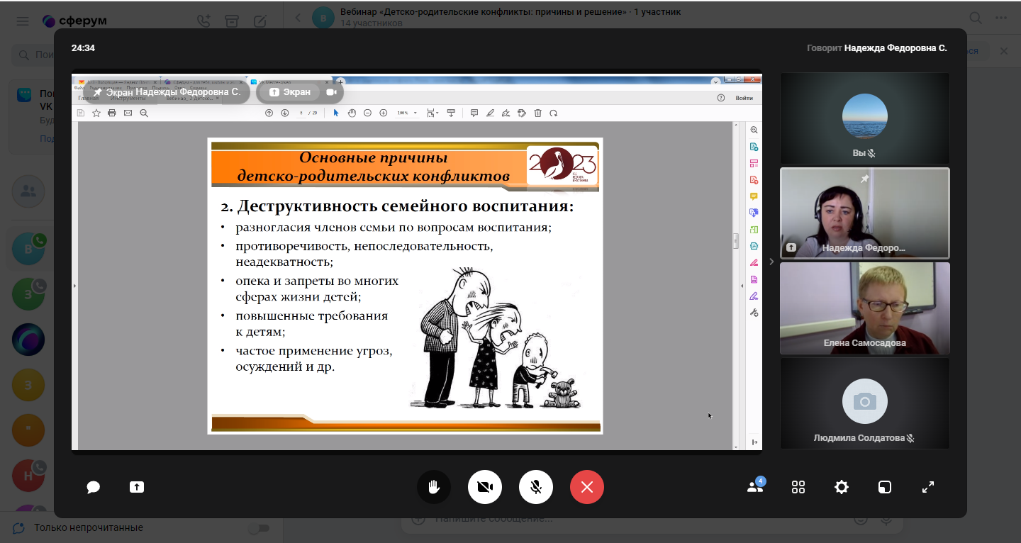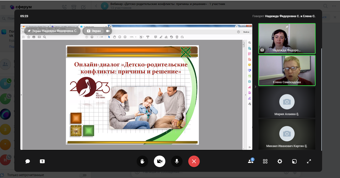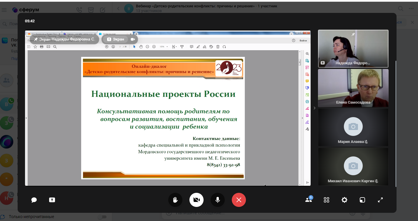 13 апреля 2023 года прошел онлайн-диалог «Детско-родительские конфликты: причины и решение» с родителями обучающихся образовательных организаций г.о. Саранск в формате видеоконференции. Мероприятие проводилось в рамках федерального проекта «Современная школа» национального проекта «Образование» на 2023 год с целью психологического просвещения родителей (законных представителей), оказания им психолого-педагогической помощи в вопросах обучения, воспитания и развития детей.