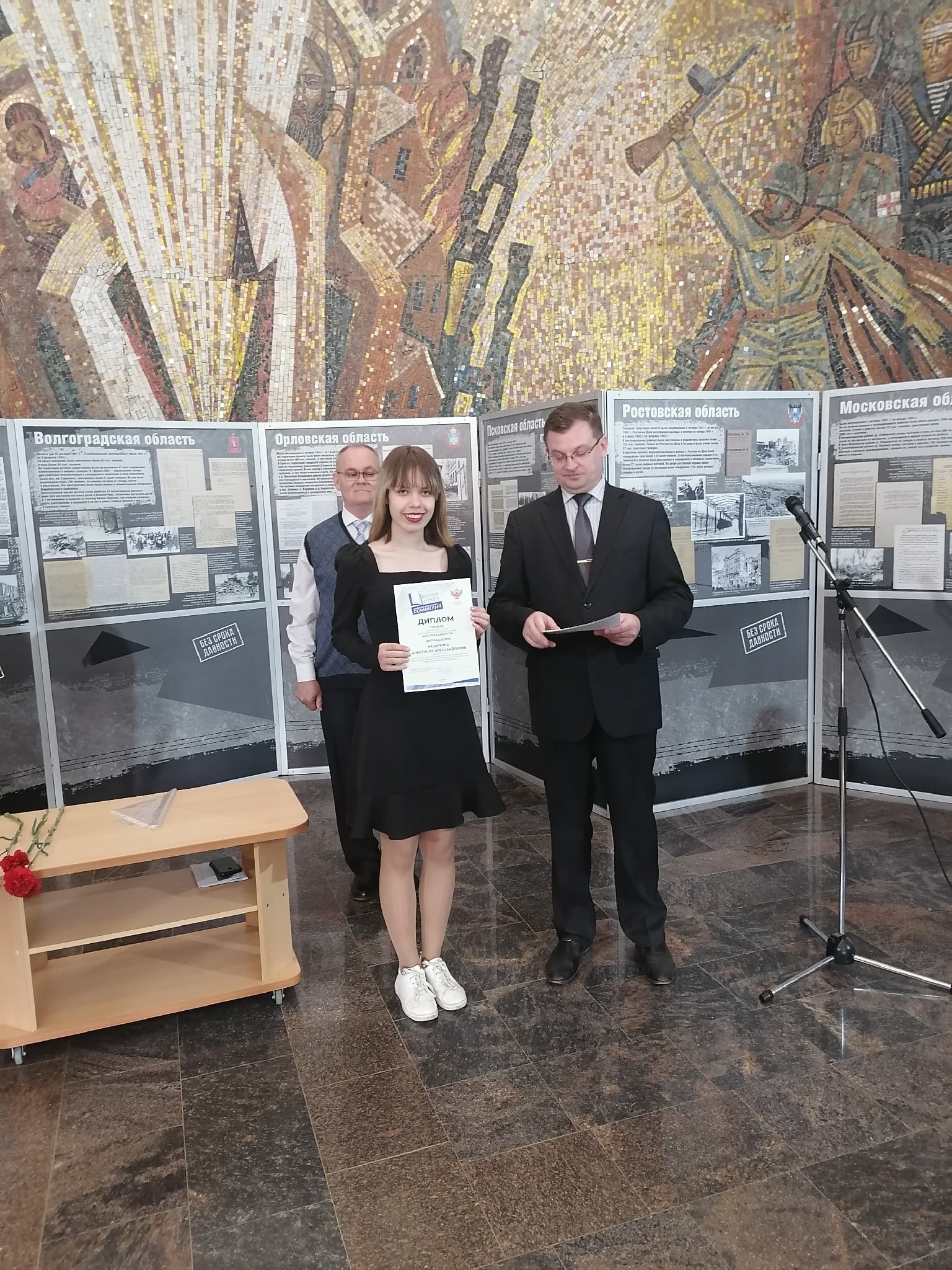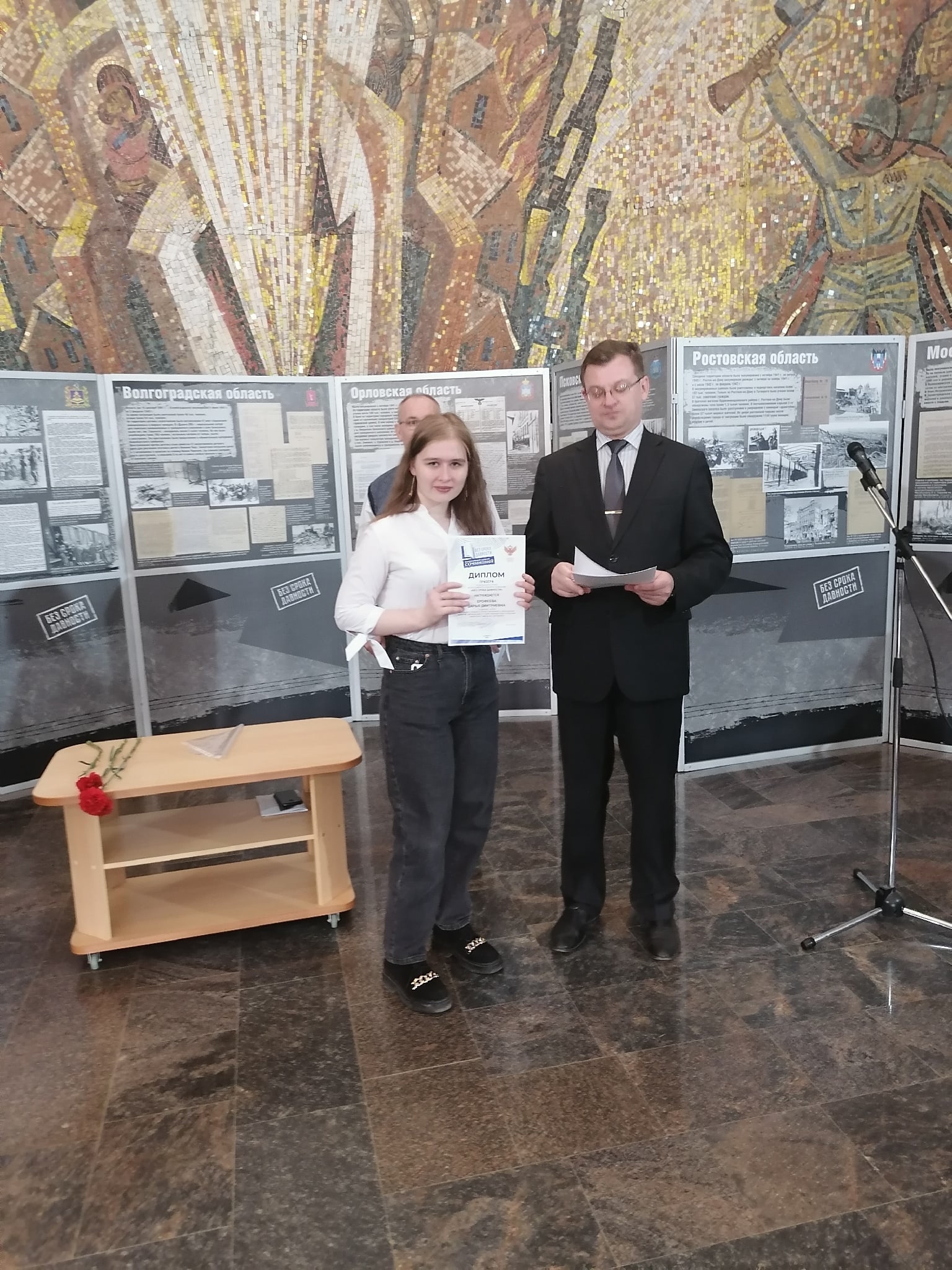 19 апреля в Мемориальном музее военного и трудового подвига 1941–1945 гг. состоялась церемония награждения победителей и призеров регионального этапа Всероссийского Конкурса сочинений «Без срока давности», приуроченная ко Дню единых действий в память о геноциде советского народа нацистами и их пособниками в годы Великой Отечественной войны: