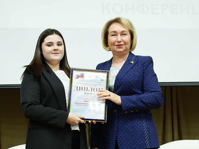 Наумова Анастасия Александровна, студентка 4 курса естественно-технологического факультета – диплом 3 степени по направлению гуманитарные науки. Тема работы «Роль наставничества в профессиональном самоопределении обучающихся выпускных классов в биологическом образовании».