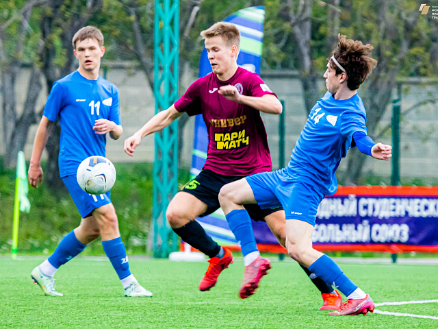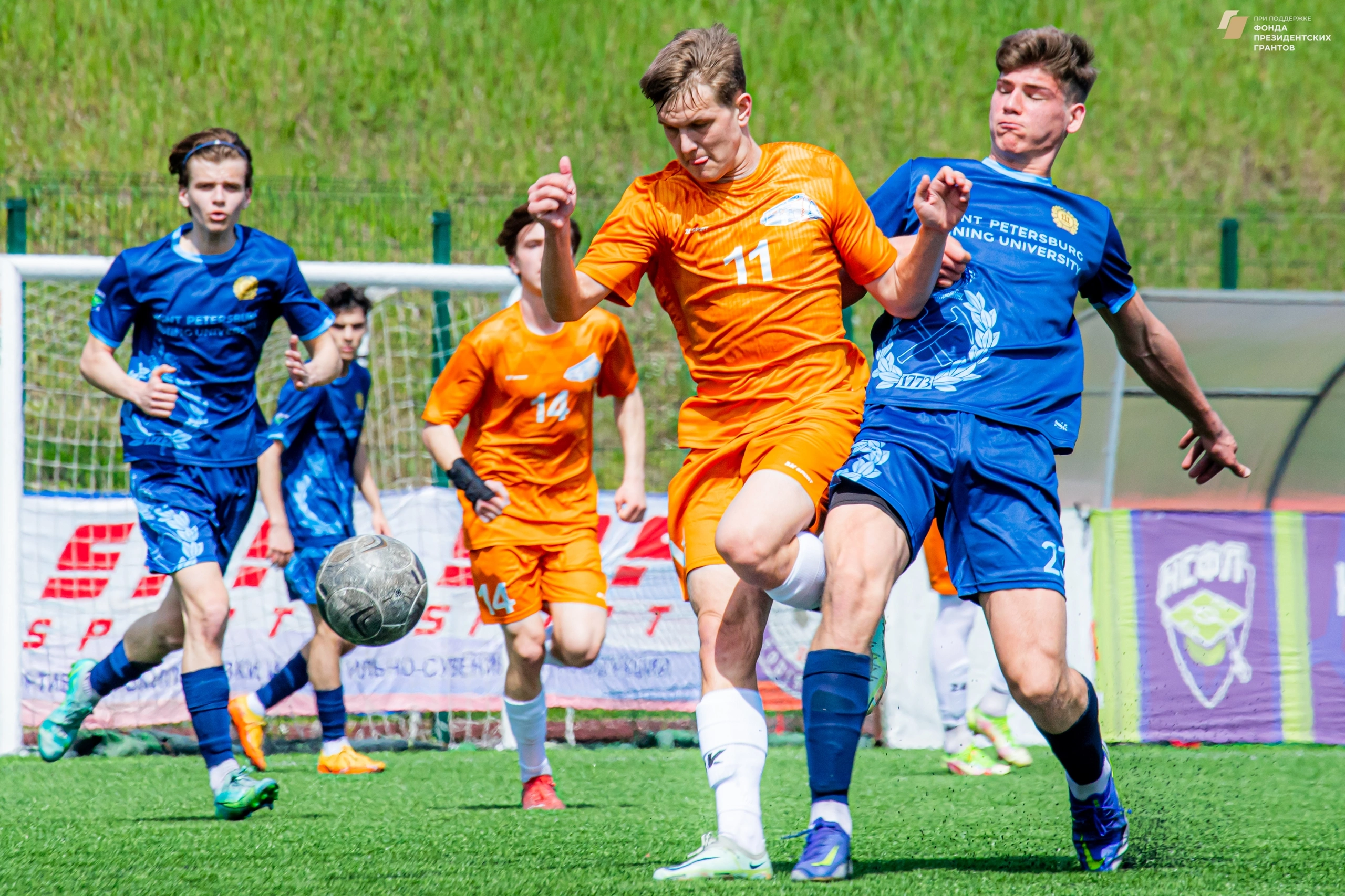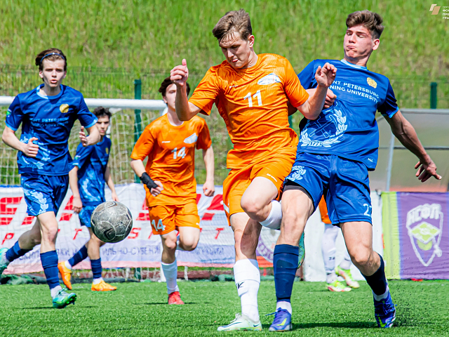 Первым соперником наших студентов стала сборная СПГУ (Санкт-Петербург) матч завершился крупной победой наших футболистов со счётом 5-2 , голы забили Антон Новиков, Владислав Волгаев, Артем Сарычев, и дублем отметился Данила Шаталин.