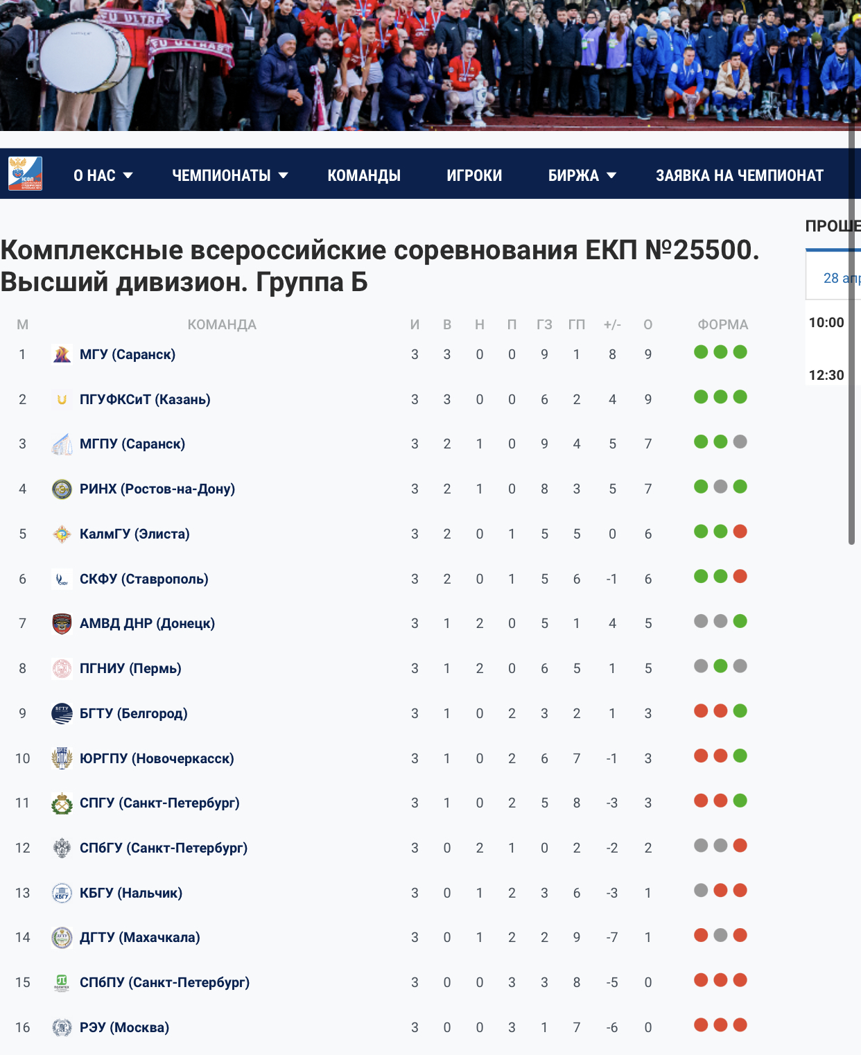 По итогам первого мини-турнира наша сборная с 7 набранными очками расположилась на 3 месте группы «Б» Национальной студенческой футбольной лиги.