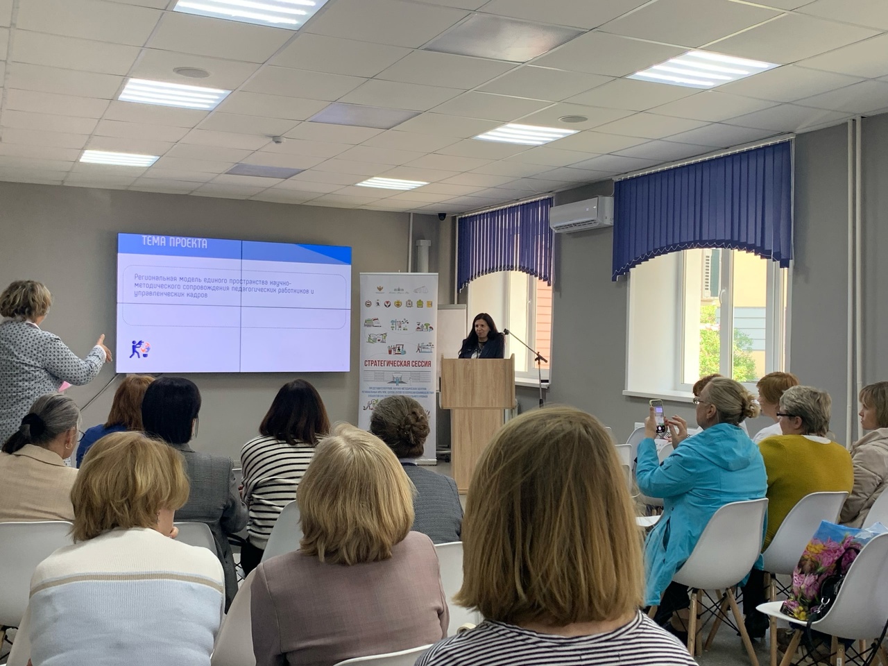 В завершении первой части сессии для общего обсуждения была предложена тема проекта: «Региональная модель единого инновационного пространства научно-методического сопровождения педагогических работников и управленческих кадров».
