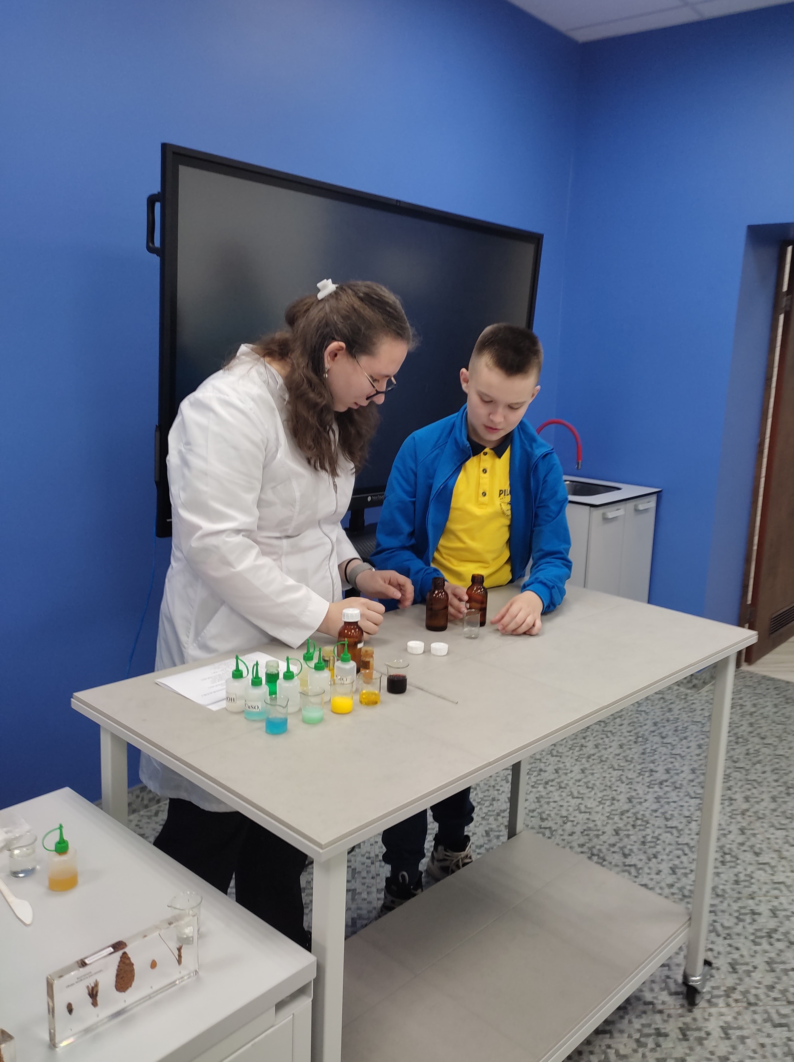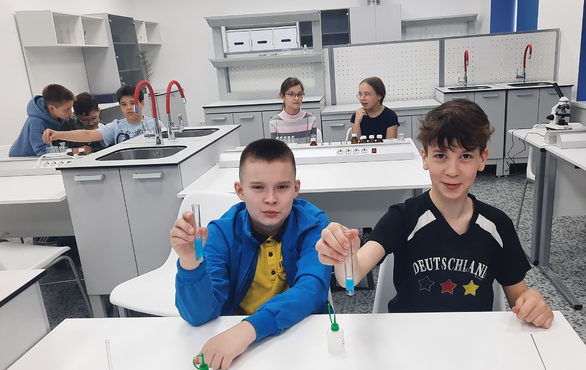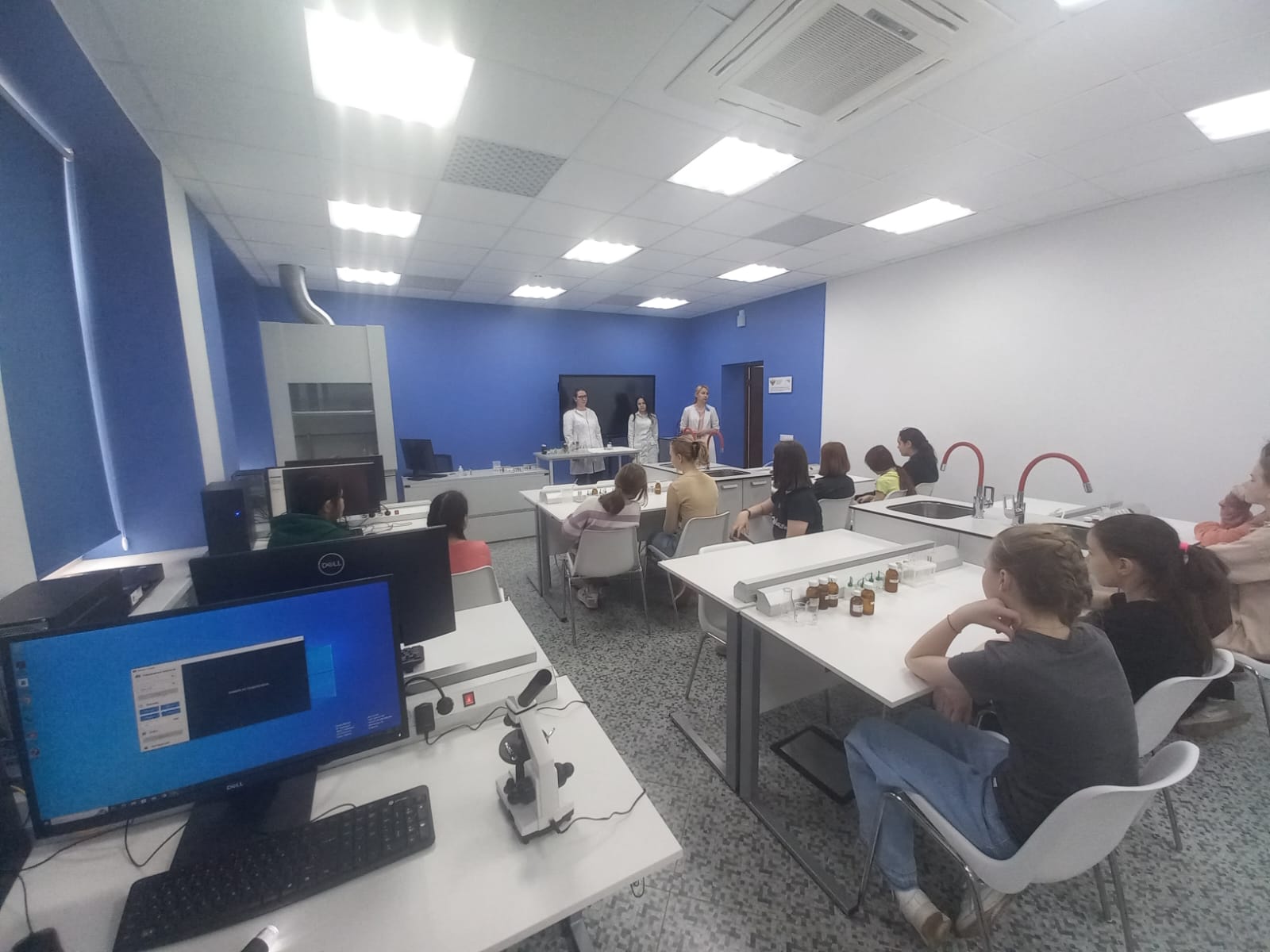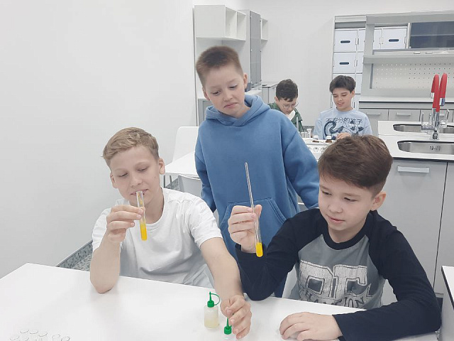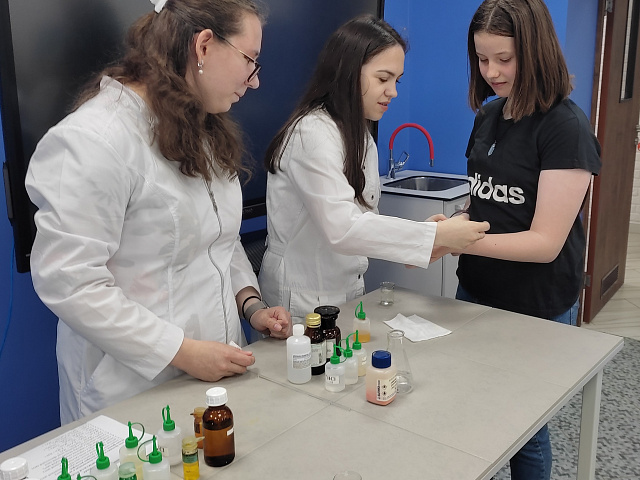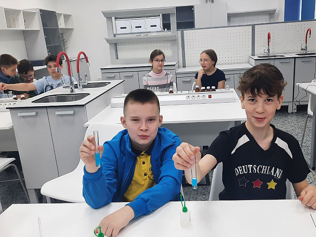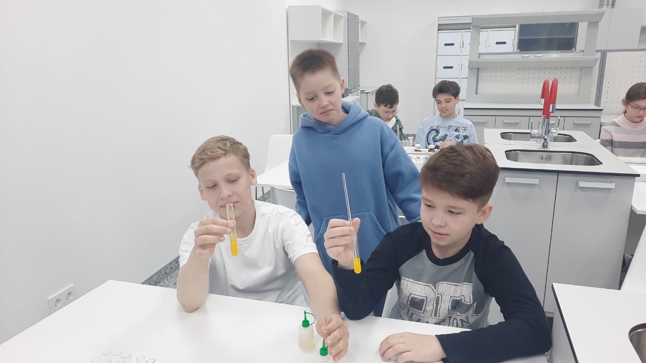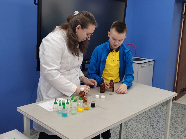 В рамках мастер-класса «Увлекательная биология и химия» школьники проделали занимательные опыты по химии, позволившие увидеть уникальность новой для обучающихся химической науки, познакомились с цифровой лабораторией по биологии, а также с помощью цифрового микроскопа рассмотрели микропрепараты растительной и животной клеток.