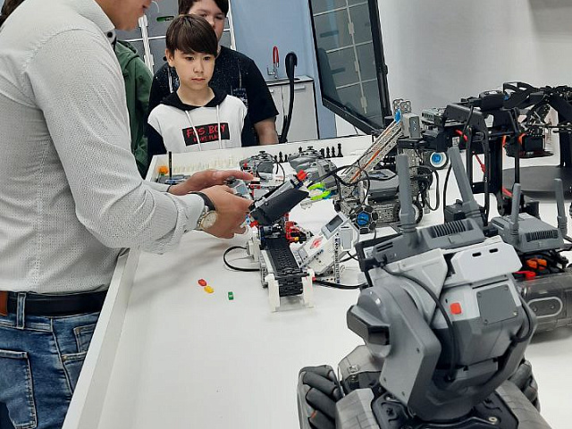 На мастер-классе «Занимательная робототехника» обучающиеся познакомились с возможностями набора LEGO MINDSTORMS EV3. Интерактивные роботы позволили юным исследователям объединить реальные модели и цифровое пространство.