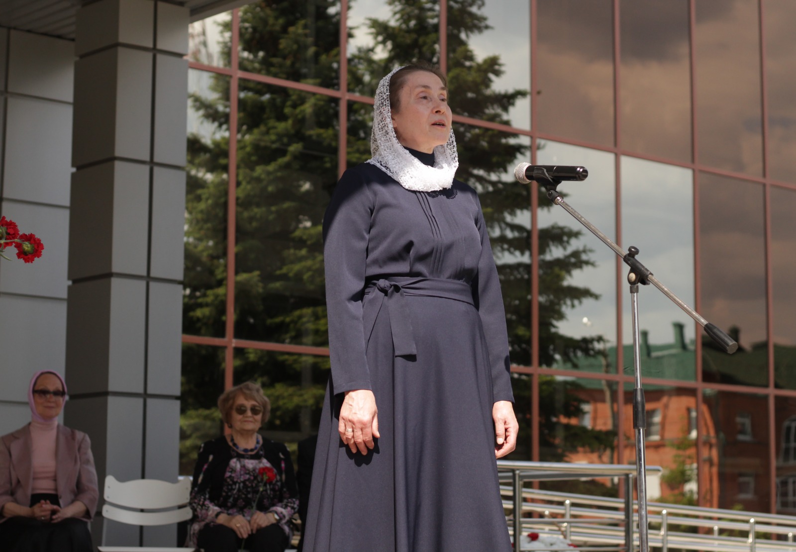 Право открыть мемориальную доску было предоставлено ректору педагогического университета Марине Владимировне Антоновой и дочери Михаила Тихоновича Марине Михайловне Бибиной.