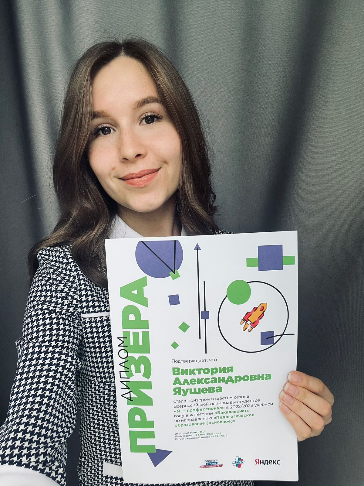 Яушева Виктория Александровна, студентка группы ПДД-119 факультета педагогического и художественного образования МГПУ – призер в категории «Бакалавриат» по направлению «Педагогическое образование (основное)».