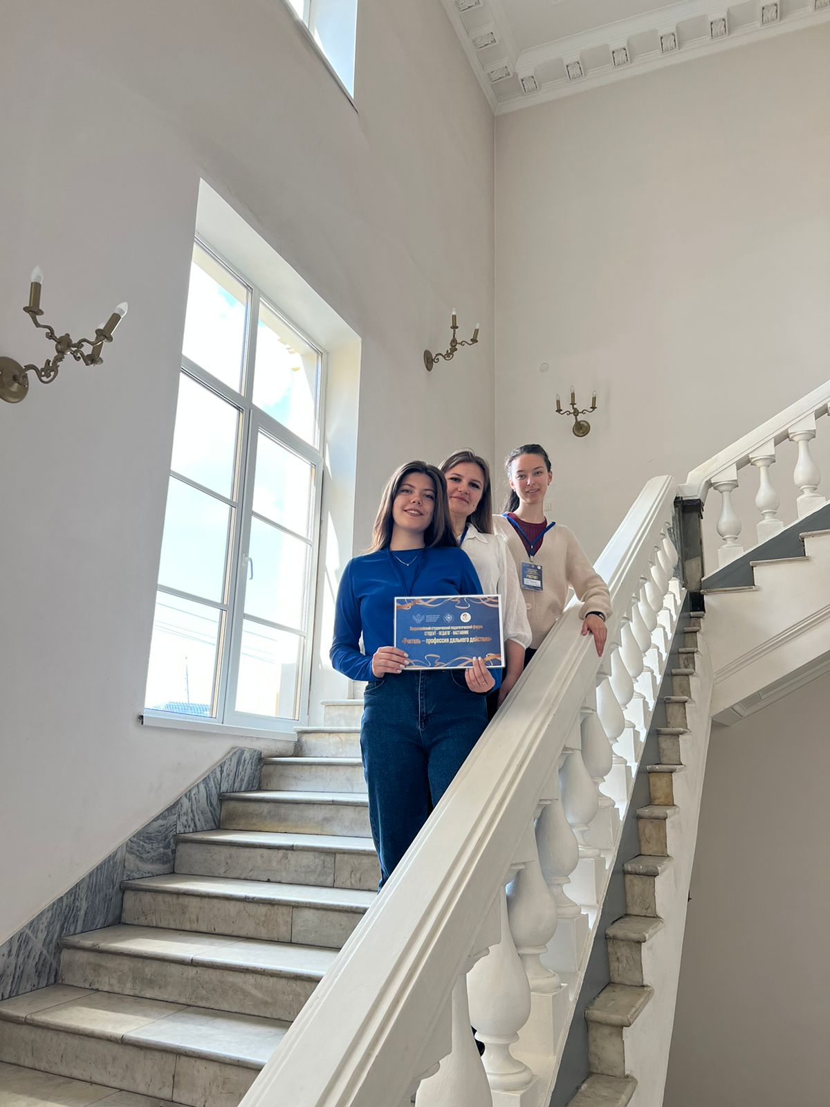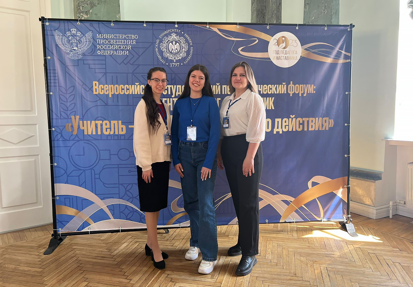 Ректор университета Антонова Марина Владимировна с командой студентов факультета педагогического и художественного образования 4 курса профиля Дошкольное образование. Начальное образование в составе: Ляпина Виктория Андреевна, Тараскина Ольга Игоревна, Хрюкина Надежда Андреевна приняли участие во Всероссийском студенческом педагогическом форуме: студент-педагог-наставник «Учитель – профессия дальнего действия» на площадке Российского государственного педагогического университета имени А. И. Герцена в г. Санкт-Петербург.
