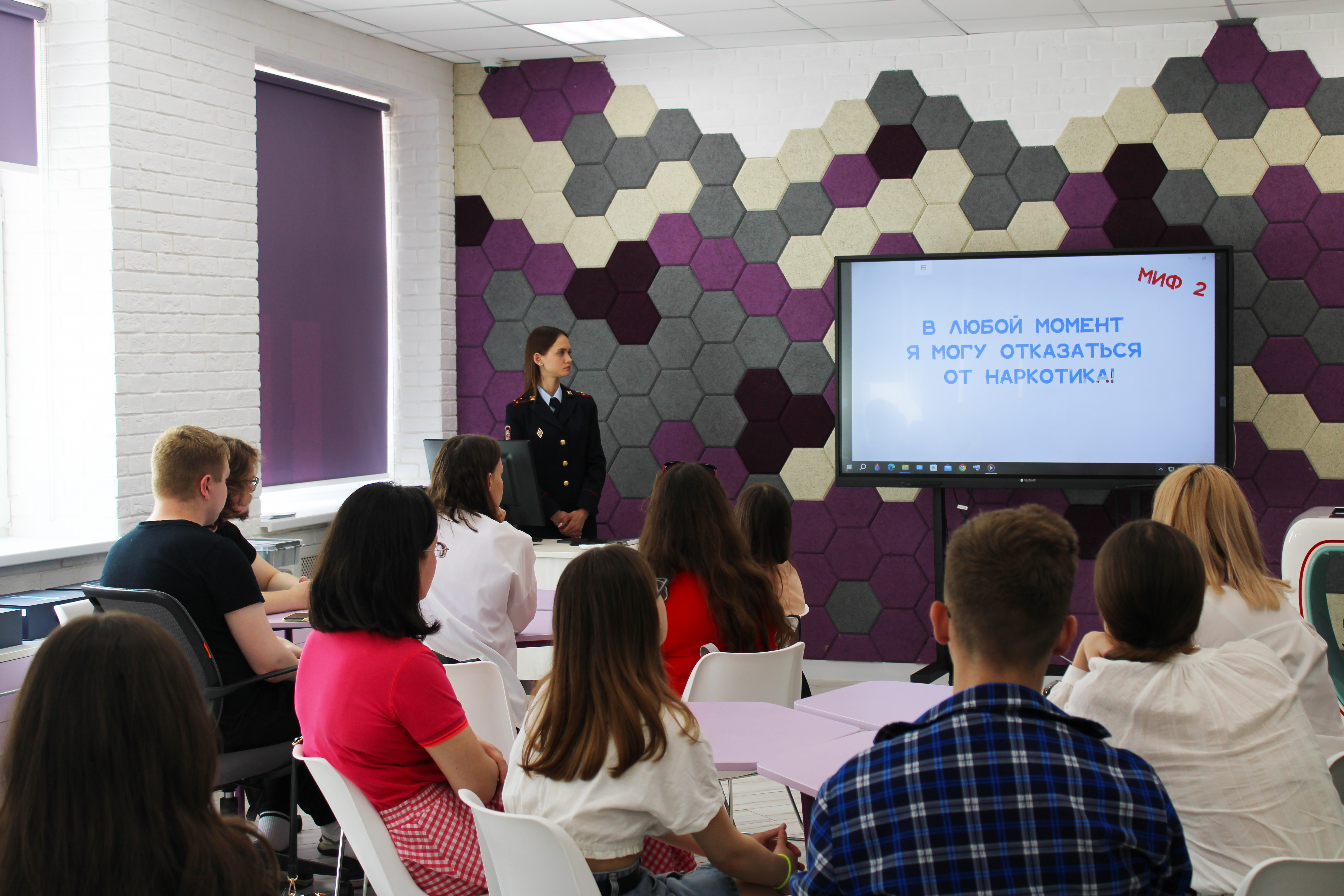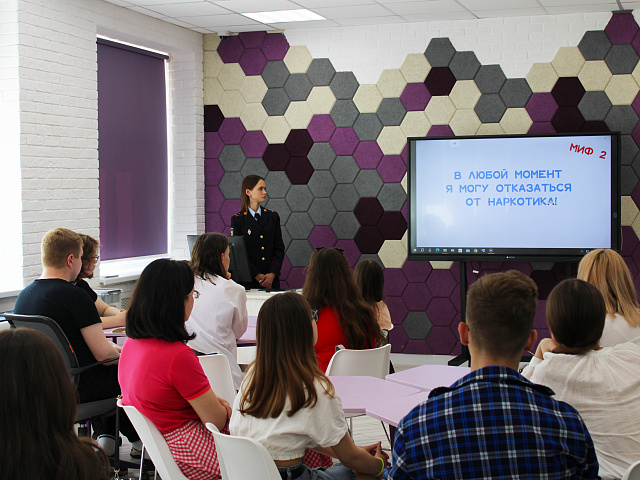 26 мая на площадке технопарка МГПУ им. М.Е. Евсевьева состоялась встреча сотрудника Управления по контролю за оборотом наркотиков МВД по Республике Мордовия, старшего лейтенанта полиции Кукаевой Александры Олеговны, со студентами факультета истории и права. В ходе беседы были затронуты правовые аспекты противодействия незаконному обороту наркотиков и наркомании.