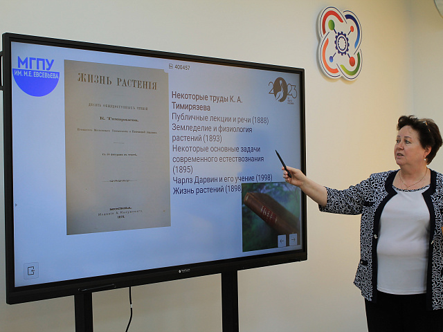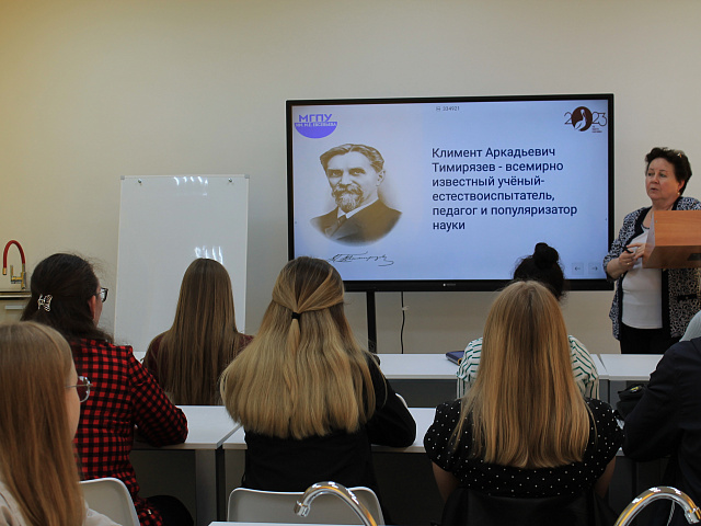 Доцентом кафедры биологии, географии и методик обучения Лабутиной М. В., были освещены вопросы становления К. А. Тимирязева как ученого и гражданина, внесшего большой вклад в развитие русской физиологической науки, подготовку кадров высшей школы и популяризации науки в обществе.