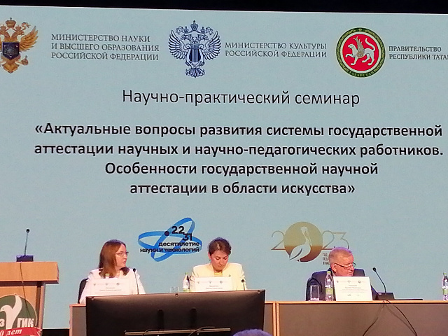 ДЕПАРТАМЕНТ АТТЕСТАЦИИ НАУЧНЫХ И НАУЧНО-ПЕДАГОГИЧЕСКИХ РАБОТНИКОВ МИНИСТЕРСТВОМ НАУКИ И ВЫСШЕГО ОБРАЗОВАНИЯ РОССИЙСКОЙ ФЕДЕРАЦИИ ПРОВЕЛ 5 ИЮНЯ 2023 ГОДА НА БАЗЕ ФГБОУ ВО «КАЗАНСКИЙ ГОСУДАРСТВЕННЫЙ ИНСТИТУТ КУЛЬТУРЫ» НАУЧНО-ПРАКТИЧЕСКИЙ СЕМИНАР НА ТЕМУ «АКТУАЛЬНЫЕ ВОПРОСЫ РАЗВИТИЯ СИСТЕМЫ ГОСУДАРСТВЕННОЙ АТТЕСТАЦИИ НАУЧНЫХ И НАУЧНО-ПЕДАГОГИЧЕСКИХ РАБОТНИКОВ».
