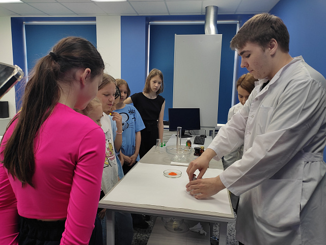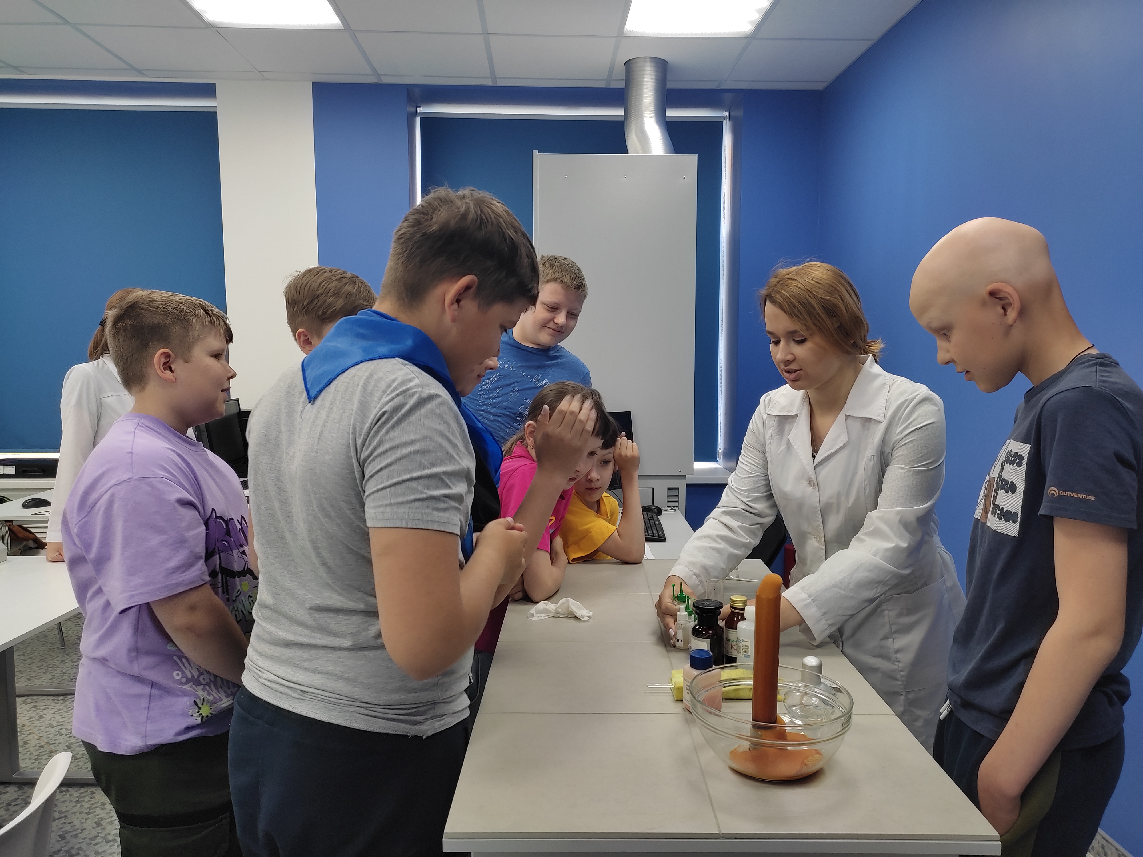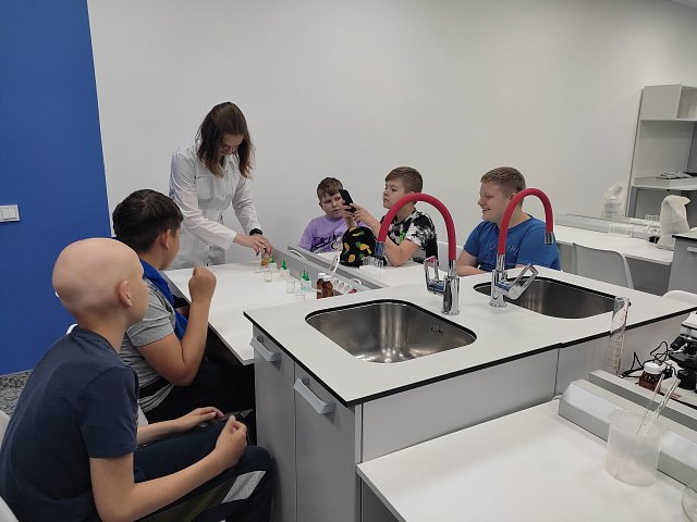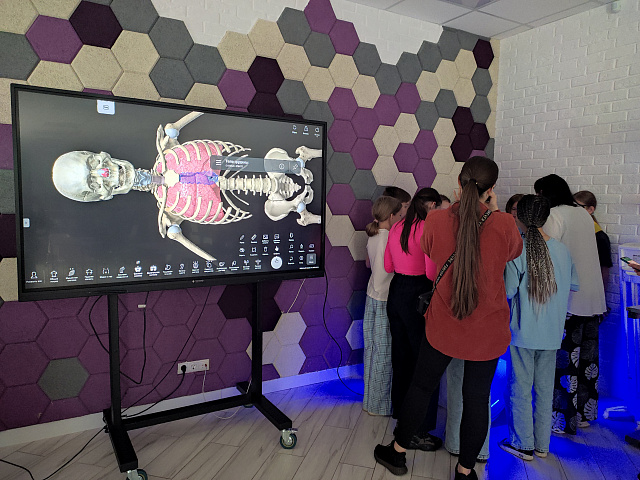 Школьники погрузились в мир химии с увлечением наблюдая за эффектными химическими реакциями. Ознакомились с особенностями строения человека при помощи интерактивного анатомического стола «Пирогова» и BiTronics Studio. Попробовали программировать и управлять роботами.