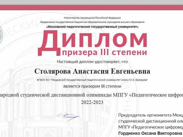 Удачно в олимпиаде выступили студенты-информатики нашего вуза (https://sdo.mpgu.org/print/olimp-result?olympic_id=208): было завоевано пять первых мест, три вторых и два третьих.