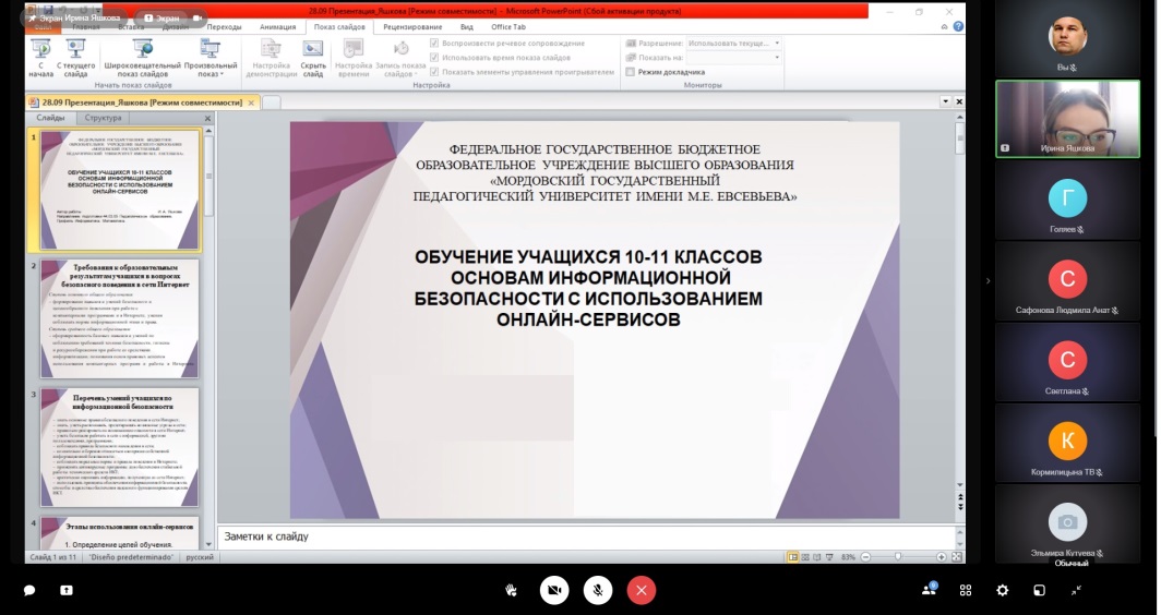 28 сентября на кафедре физики, информационных технологий и методик обучения Мордовского государственного педагогического университета им. М.Е. Евсевьева прошел региональный обучающий семинар «Цифровизация системы образования и обеспечение информационной безопасности». В семинаре приняли участие магистранты профиля подготовки «Информатика и прикладные исследования в области информационных технологий», учителя информатики г. Саранска и районов Республики, педагоги дополнительного образования.
