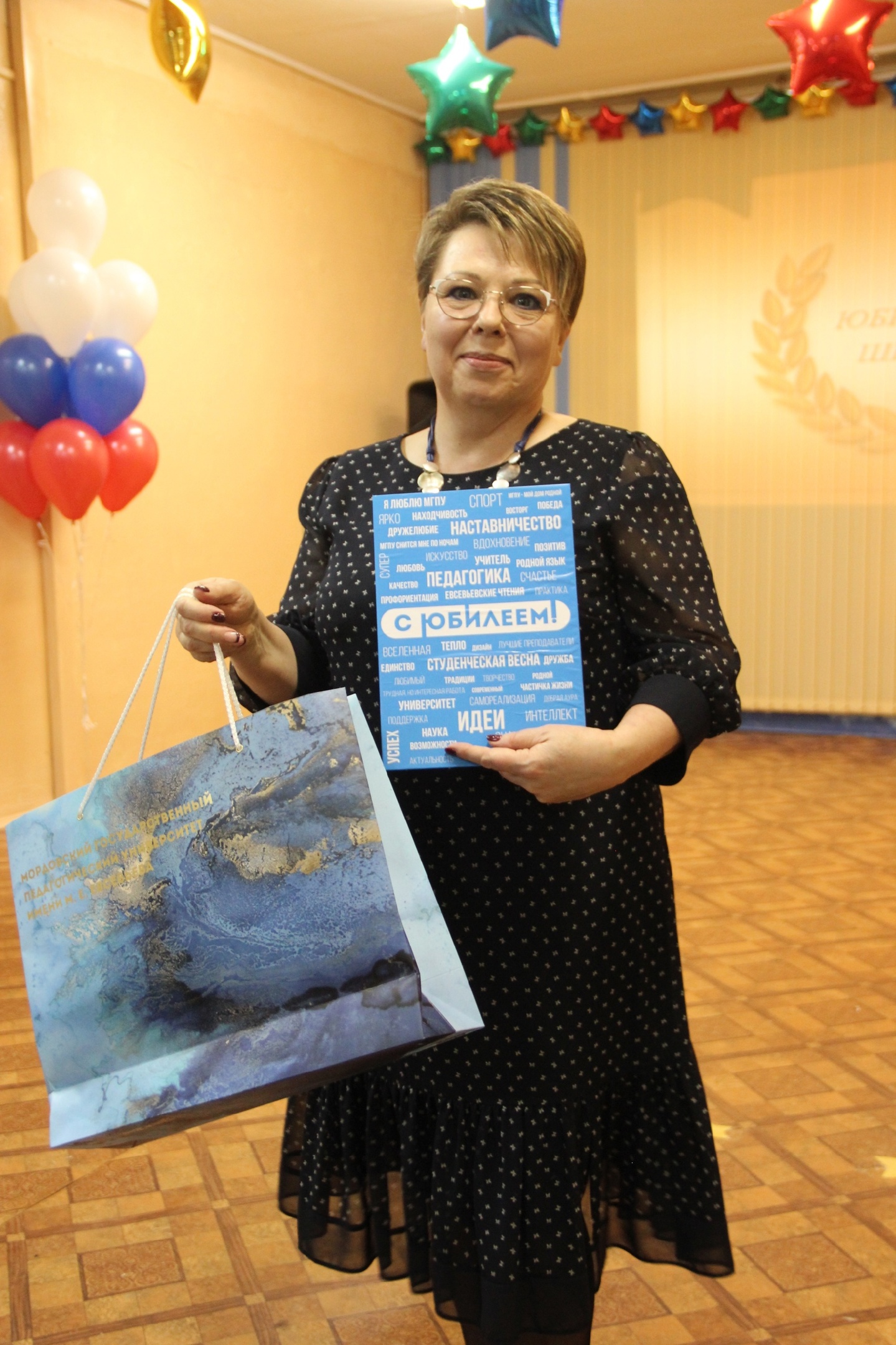 Л. А. Лазутова от имени М. В. Антоновой, доктора педагогических наук, ректора Мордовского государственного педагогического университета имени М. Е. Евсевьева зачитала приветственный адрес, в котором выразила педагогическому коллективу, директору школы, Т. Т. Суренковой. искреннюю признательность и благодарность за добросовестный, творческий, результативный труд и высокие заслуги в области образования.