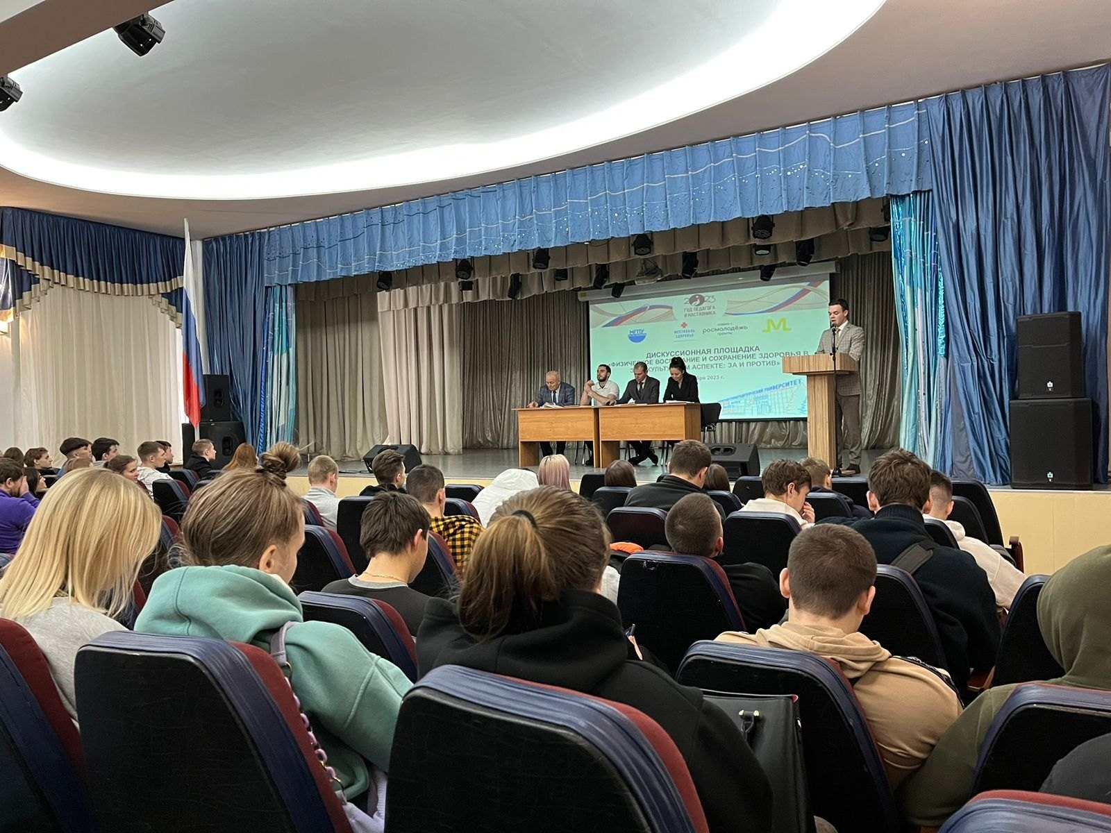 Студенты с интересом слушали спикеров, а также приняли активное участие в дискуссии, где значительная часть вопросов касалась особенностей педагогической деятельности учителя физической культуры.