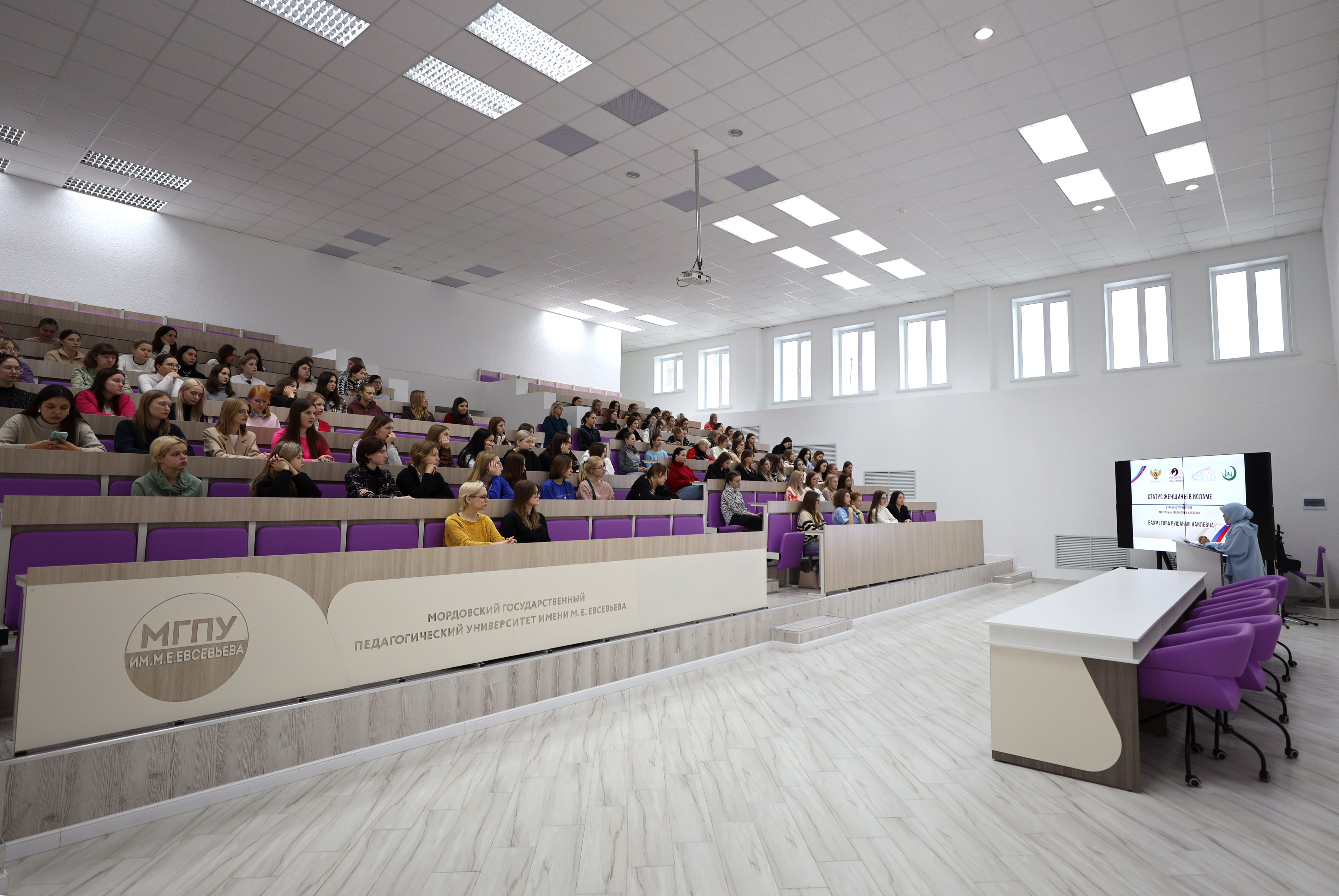 Сегодня в МГПУ им. М.Е. Евсевьева состоялась встреча преподавателя основ ислама Рушании Наилевны Бахметовой со студентами. Организатором мероприятия выступило Региональное духовное управление мусульман Республики Мордовия.