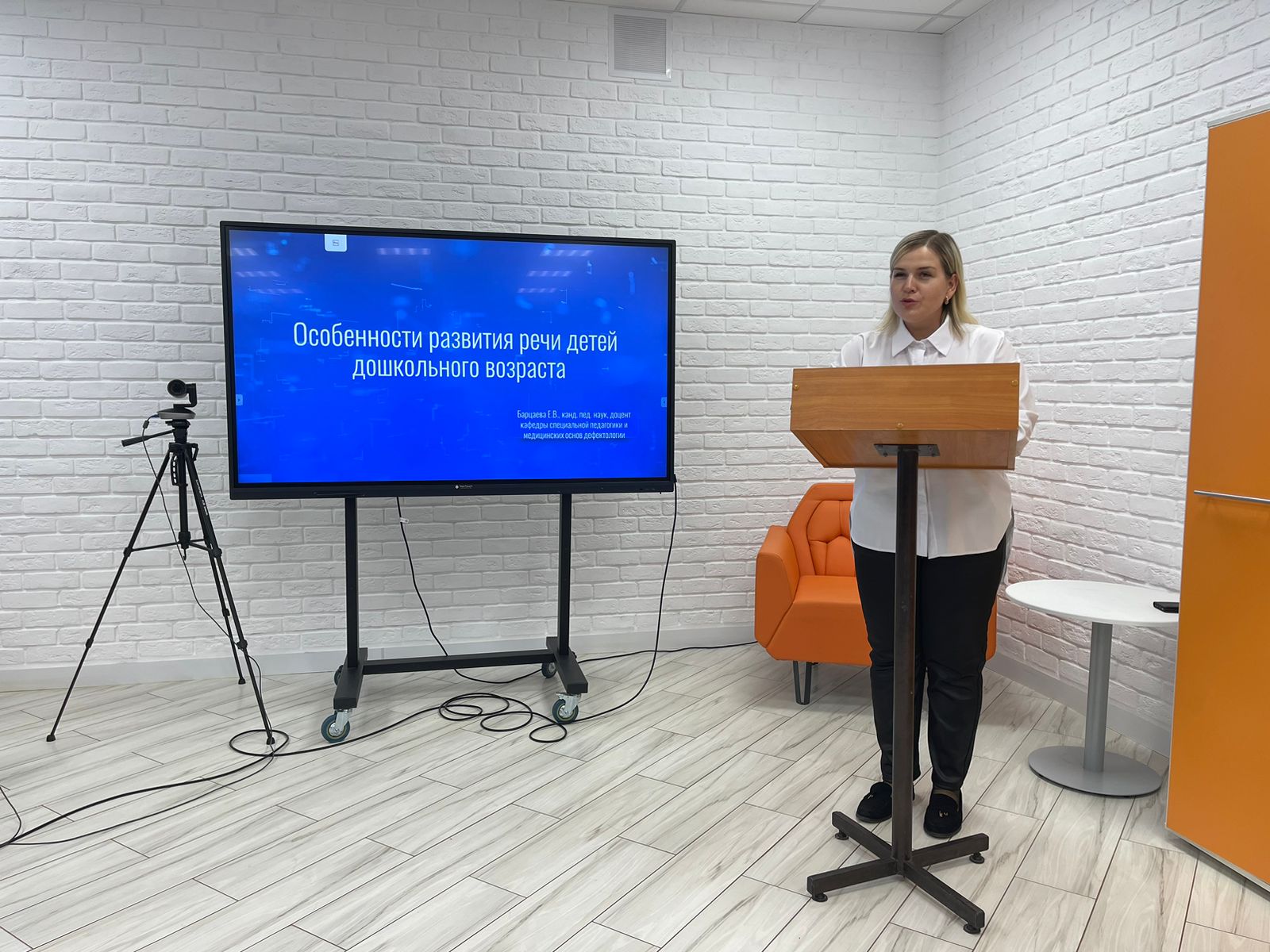 В ходе вебинара была организована дискуссионная площадка, на которой обсуждались проблемы развития речи детей дошкольного возраста и роль родителей в реализации данного процесса. Модератором диалога была Елена Васильевна Барцаева, доцент кафедры специальной педагогики и медицинских основ дефектологии, кандидат педагогических наук. Она раскрыла значение и особенности развития речи детей дошкольного возраста. Елена Александровна Котькина, старший преподаватель кафедры специальной педагогики и медицинских основ дефектологии, продемонстрировала примеры практико-ориентированных заданий по развитию речи детей дошкольного возраста. Ольга Васильевна Терлецкая, старший преподаватель кафедры специальной педагогики и медицинских основ дефектологии, продемонстрировала применение игровых техник по развитию речи детей дошкольного возраста.
