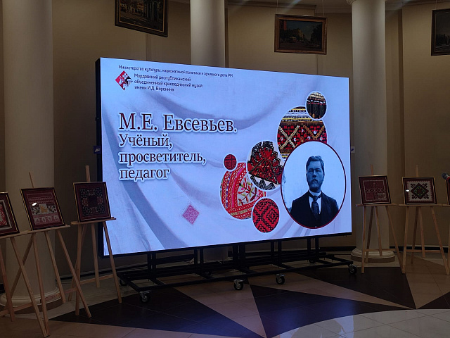 Ученый, просветитель, педагог» в Малом выставочном зале Мордовского краеведческого музея имени И. Д. Воронина. С именем М. Е. Евсевьева связан новый этап в развитии мордовской письменности и национального самосознания. Изучив разговорный язык, он создал «Образцы мордовской народной словесности», написал первые буквари для мокши и эрзи.